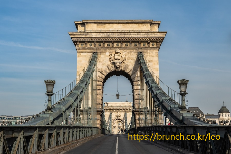 오늘 여행의 시작 지점은 부다 지구와 페스트 지구를 연결하는 최초의 교량이었던 세체니 다리다. 숙소인 D8 호텔에서 세체니 다리까지는 다행히 걸어서 2~3분 거리다. 그런데 안타깝게도 세체니 다리는 공사 중이다. 1년이 지난 지금은 공사를 마치고 재개통했지만 2022년 10월에는 입구를 막고 관광객 통행을 제한했다. 전날 부다왕궁에서 내려다본 풍경을 기억하면서 세체니 다리 관광을 마감할 수밖에 없었다.