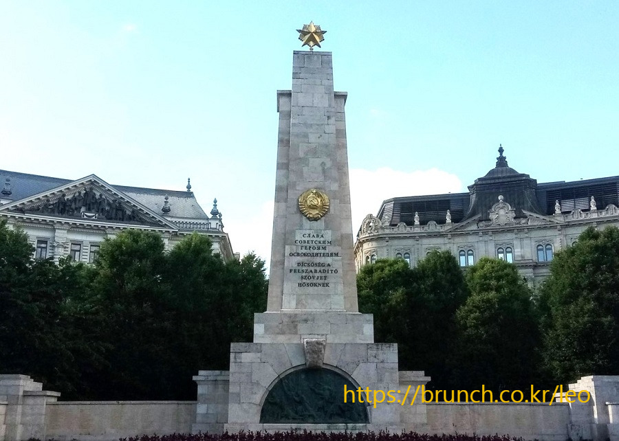 그런데 로널드 레이건 동상 뒤에는 특이하게도 옛 소련이 건설한 ‘제2차 세계대전 기념비’가 보인다. 꼭대기에 별이 달리고 옛 소련을 상징하는 망치와 낫을 든 사람이 새겨진 기념물이다. 옛 소련이 헝가리를 사실상 지배했을 때 건설한 것인데, 헝가리 전국을 통틀어 유일하게 남은 옛 소련 기념물이다. 옛 소련이 붕괴된 이후 기념물 철거 논란이 일었지만 푸틴 러시아 대통령 지지파인 빅토르 오르반 총리가 2000년 집권하면서 논란은 잠잠해졌다.