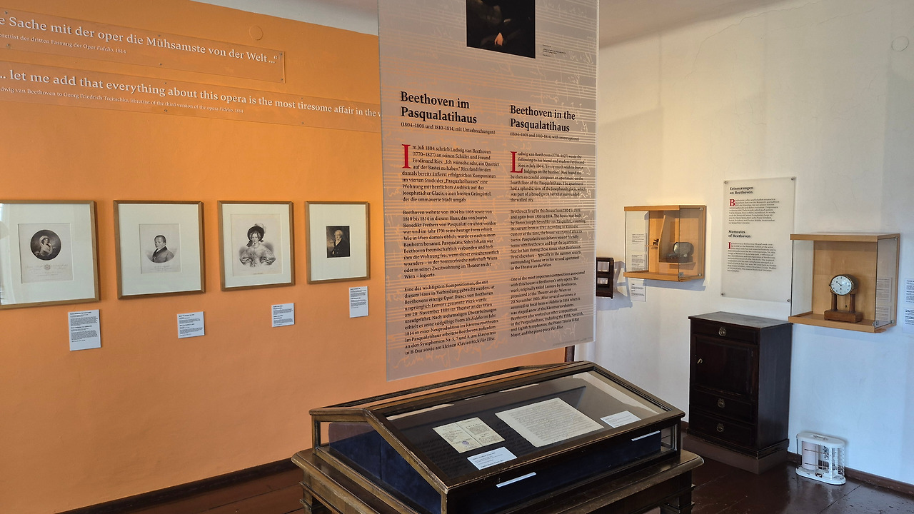 베토벤이 살았던 파스퀄라티하우스 꼭대기 층은 나선형 계단 105개를 걸어야 올라갈 수 있다. 다른 층에는 지역주민이 실제로 살기 때문에 조심해서 조용히 걸어야 한다. 그가 살던 층은 박물관으로 변신했는데, 지인과 주고받은 편지나 문서, 각종 개인 물품은 물론 그의 머리카락도 전시돼 있다. 가장 눈에 띄는 것은 그가 사용했던 스트라이셔 그랜드 피아노다.