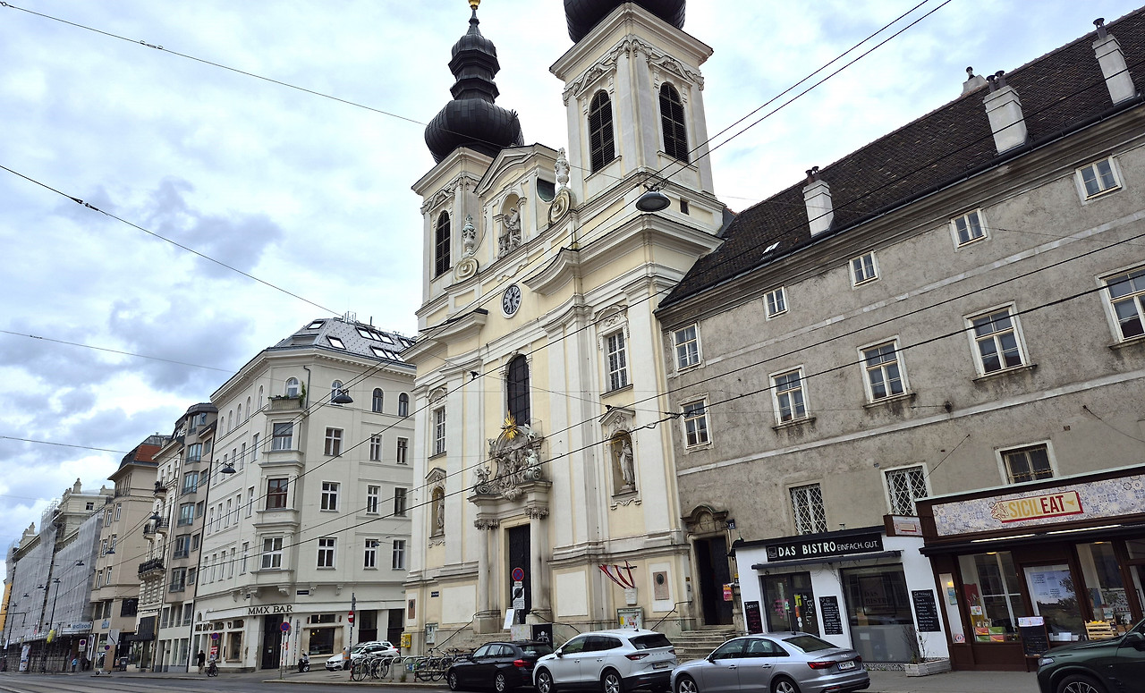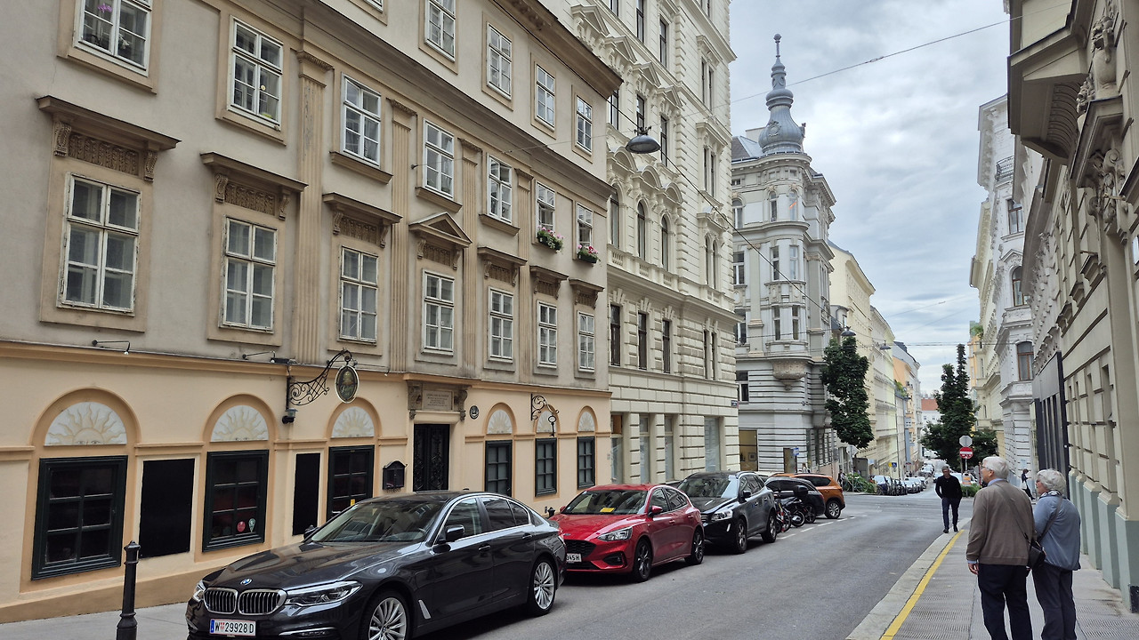 그릴파저하우스의 초라한 모습을 사진에 담고 다시 트램 37번을 탄다. 이번에는 쇼텐토어역까지 가지 않고 슈바츠파니어슈트라세정류장에서 내린다. 이곳에는 베토벤이 눈을 감은 저택과 그의 장례식이 열린 성당이 있다.