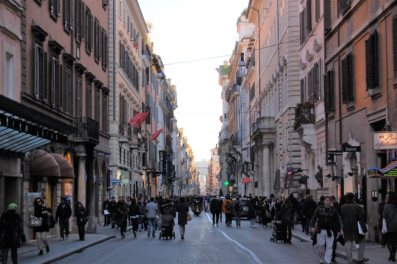 코르소 거리는 카피톨리노 언덕 앞 베네치아 광장에서 시작해 포폴로 광장까지 이어지는 총길이 1.5㎞ 정도의 거리다. 이곳에 사람들이 넘쳐나는 것은 많은 로마 유적에 접근할 수 있는 통로이기 때문이다. 스페인 광장, 트레비 분수, 판테온, 나보나 광장 등 유명한 관광지가 이 길을 따라 몰려 있다.