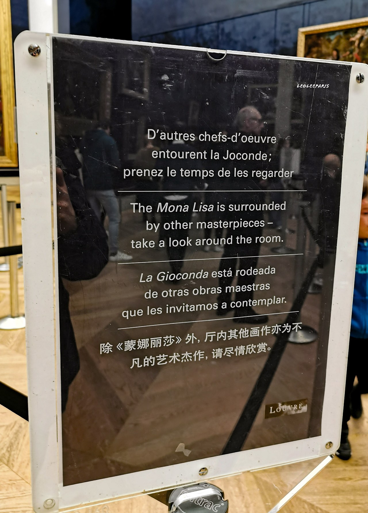 "모나리자는 명작들 사이에 둘러 쌓여 있습니다. 주변을 보는 시간을 가져보세요"