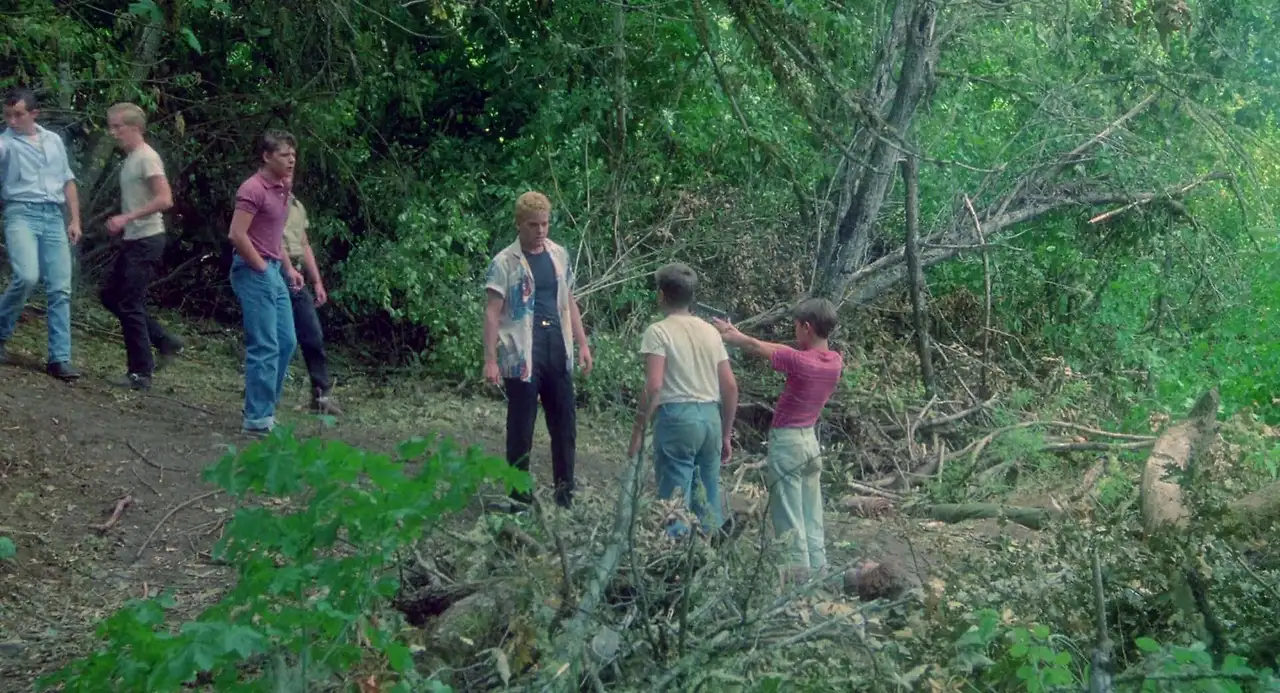 패거리들에게 형의 유품을 빼앗겨도 가만히 있던 고디는 이제 결의의 찬 모습으로 크리스와 친구들을 지켜낸다. 성장한 고디가 처음으로 세상과 맞서기 시작하는 시점이다. 사슴과 마주한 순간이 깨달음의 순간이었다면 양아치 에이스에게 맞서는 순간은 첫 행동의 시작인 것이다.