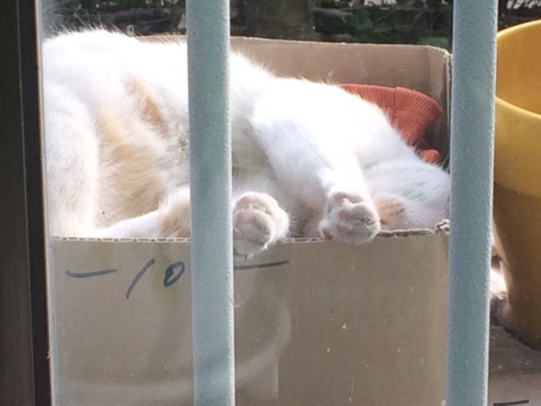 날이 추워져서 그런지 잘 마주치지를 못해 생존 여부도 불확실하긴 하다. 다만 사료 줄어드는 속도가 비슷한 걸 보면 셋 다 먹고 있다고 짐작은 가는데 말이다. 겨울용 커다란 사과 박스로 집을 만들고, 못쓰는 겨울 점퍼를 잘라서 방한용으로 깔아 베란다와 지면 사이에 넣어두었다. 상자 입구에 털들이 붙어있는 것으로 봐서 이 박스는 사용은 하는 것으로 짐작되어 안심이다.
