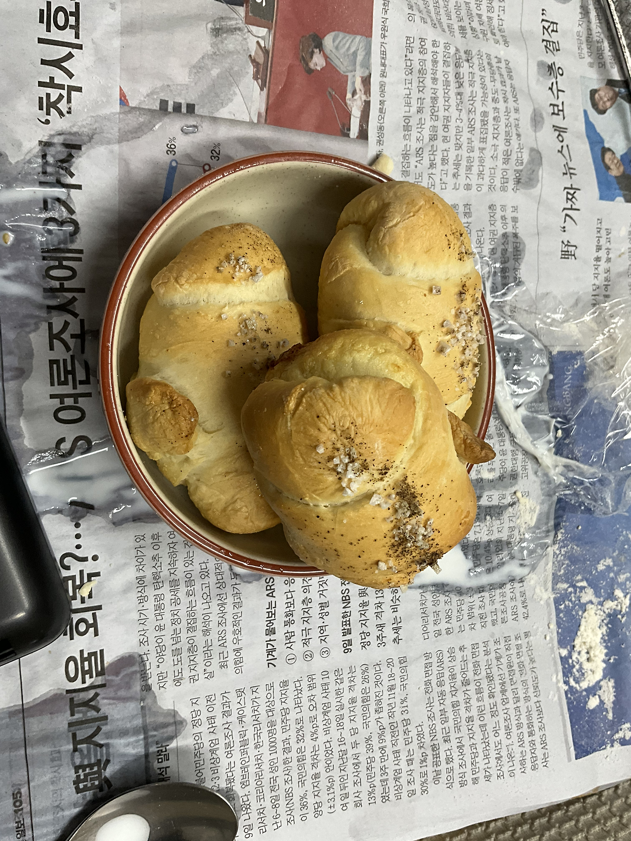 아. 어제 빵을 잘 만들었다고 방심한 게 잘 못 이었다. 앞으로는 빵을 만들고 방심하지 말아야지 근데 남은 빵은…..
