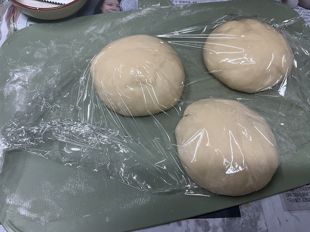 오! 괜찮아 보입니다. 고수분들보다는 능숙하지 않지만 어제보다 나은 것 같아 만족합니다. 이제 1시간 최종 3차 발효시간입니다.