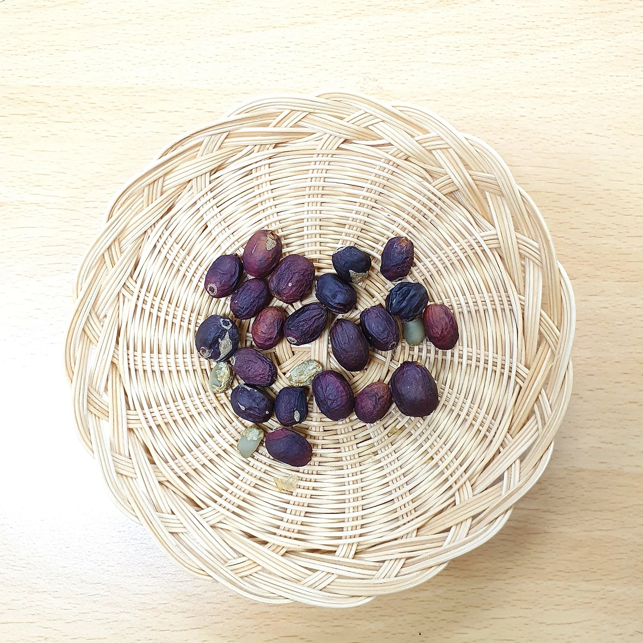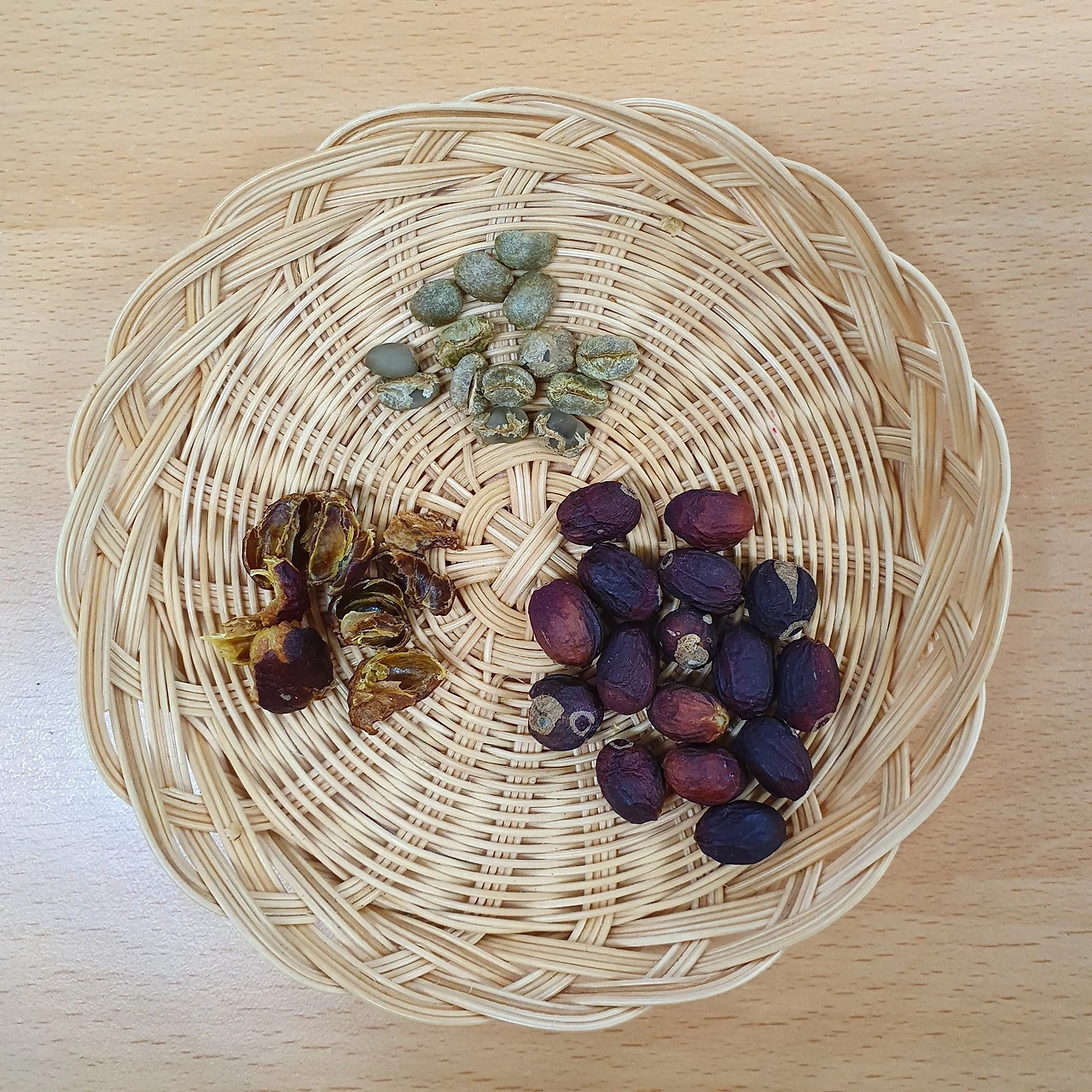 겉은 딱딱하고 속은 꾸덕한 열매를 까서 드디어 그린 빈(생두)과 조우했다.