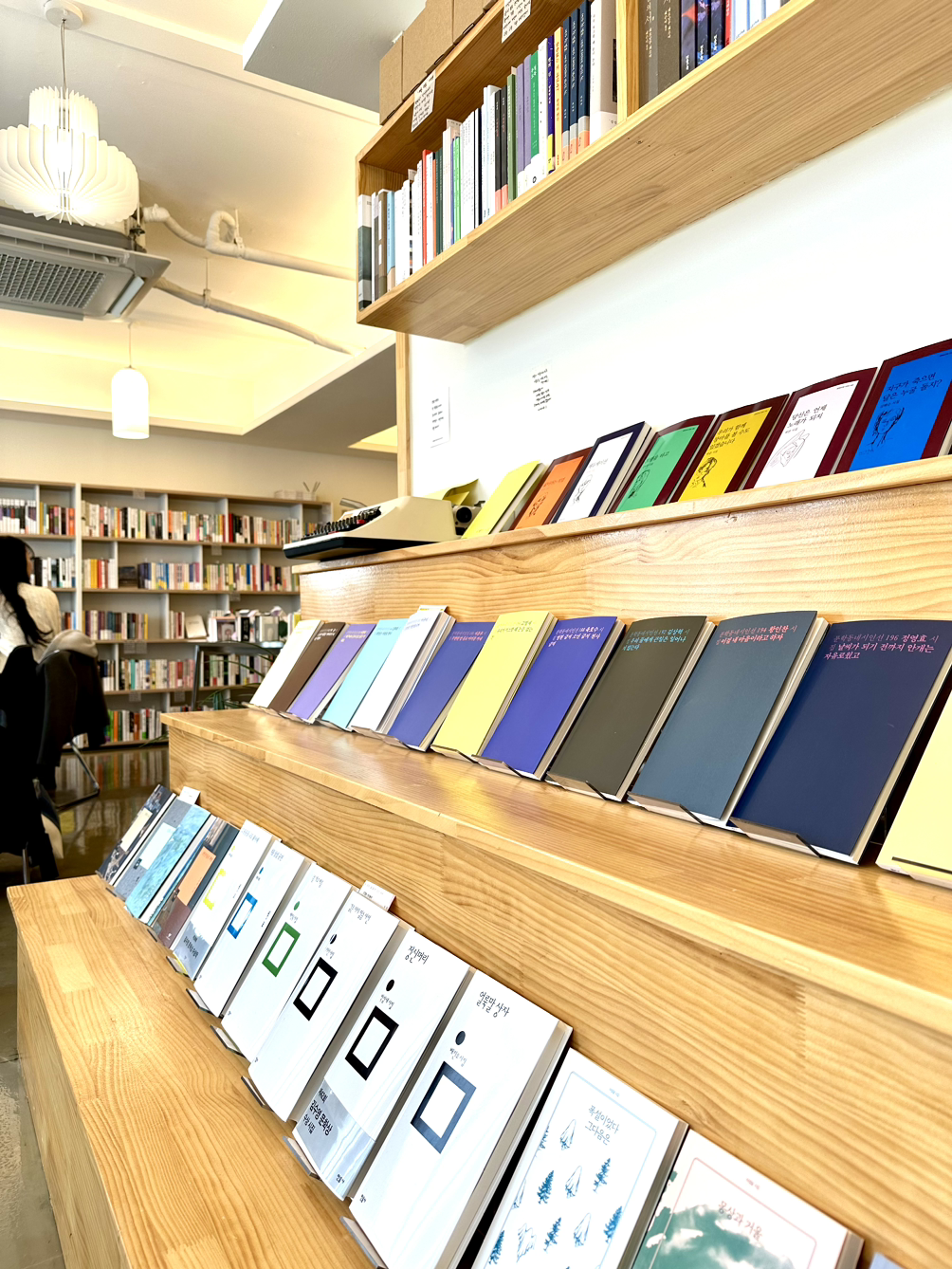 각설하고, 들어서면 왼편으로 탁 트인 책방 전경이 펼쳐지고, 좀 더 왼편으로 돌아 안쪽으로 들어서면 꺾이는 공간이 창가자리까지 연결된다.
