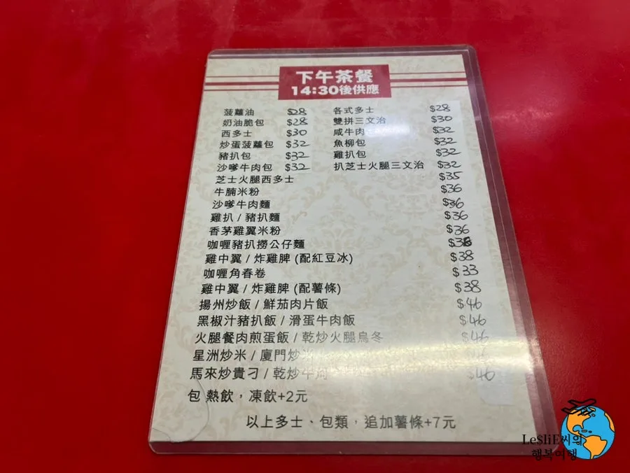 바로 직전의 글에서도 침사추이의 한 차찬탱을 소개하였기에, 먼저 차찬탱이라는 단어의 뜻부터 천천히 풀어보아야 할 것 같다는 생각도 든다. 차찬탱은 이름 그대로 '차를 제공하는 식당'으로 손님에게 물을 내오던 양식당과 구별하기 위해 사용된 용어라고 한다. 홍콩의 물가에 비해 값이 싸고, 다양한 메뉴가 있는 대중음식점이라 여행객뿐 아니라 현지인들에게도 사랑받고 있는 식당이라고 생각하면 편할 것 같다.