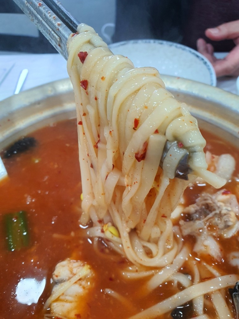 모리국수에는 뱃사람들의 서사가 담겨있다. 처음 포항 구룡포에서 어부들이 끓여 먹기 시작했단다. 일제강점기 일본인 집성촌이 즐비했던 구룡포항, 겨우내 매서운 칼바람을 정면으로 맞서며 생업에 매달리던 어부들과 종일 숨비를 토해내던 해녀들의 추위와 허기를 달래던 음식이 모리국수였다. 서슬 퍼런 일제강점기 피눈물의 시절, 매꼬롬하게 품질 좋은 생선들은 모두 수탈당했겠지.