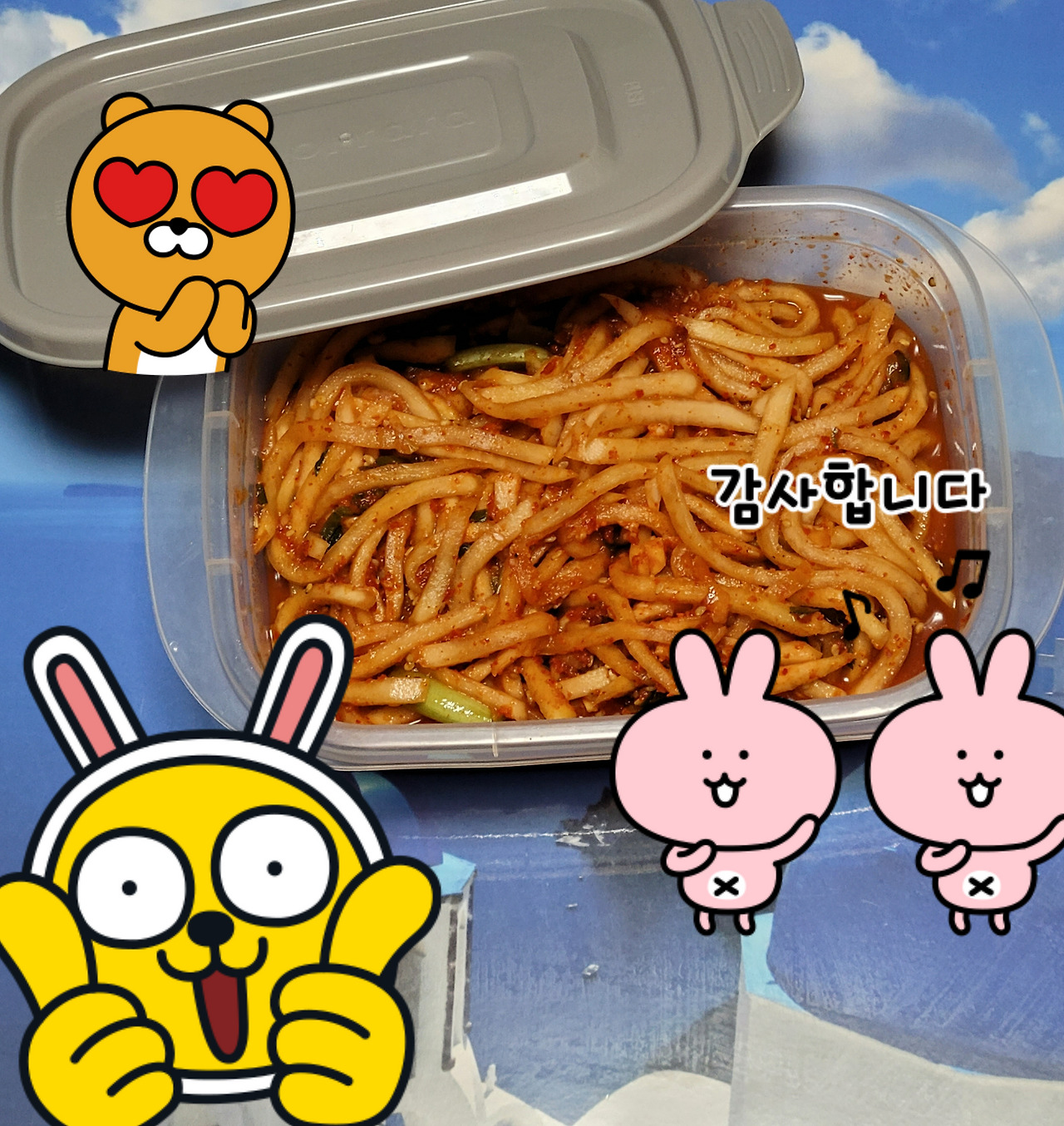 "엄마 무생채 했어. 와서 가져가."