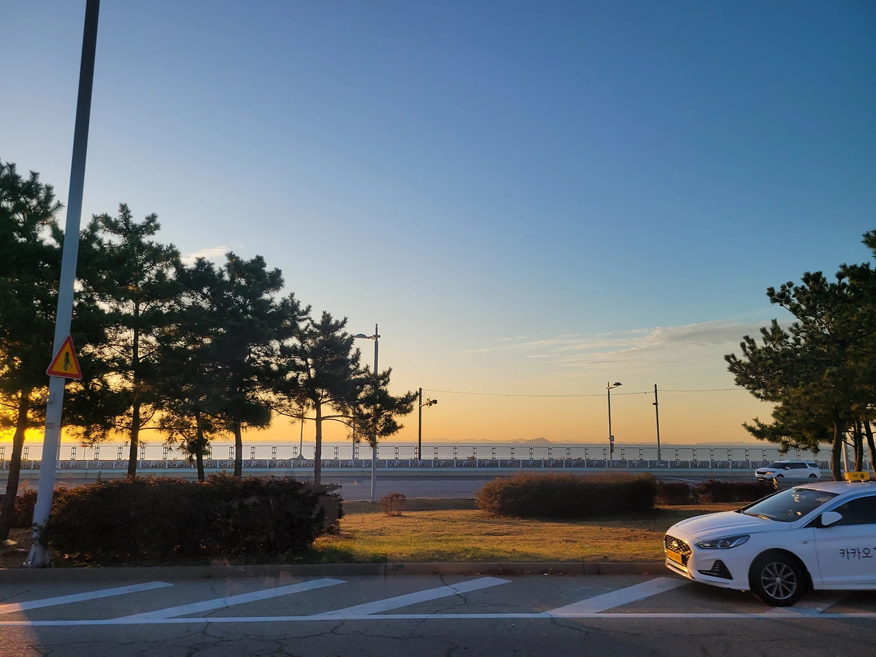공항버스 안에서 자려고 마음먹었는데, 창밖을 보니 일출이 내 갬성을 자극해 휴대폰 카메라 앱을 열고 사진을 찍었다.