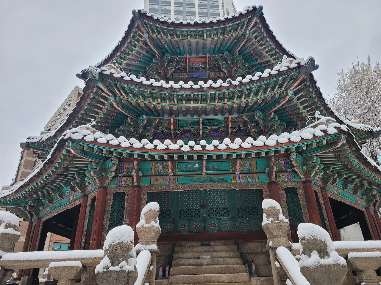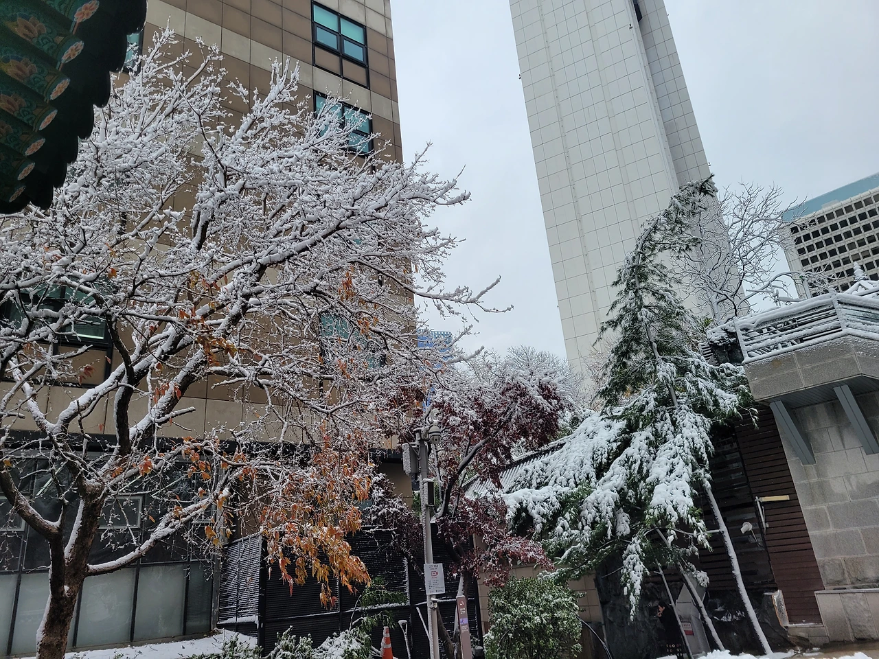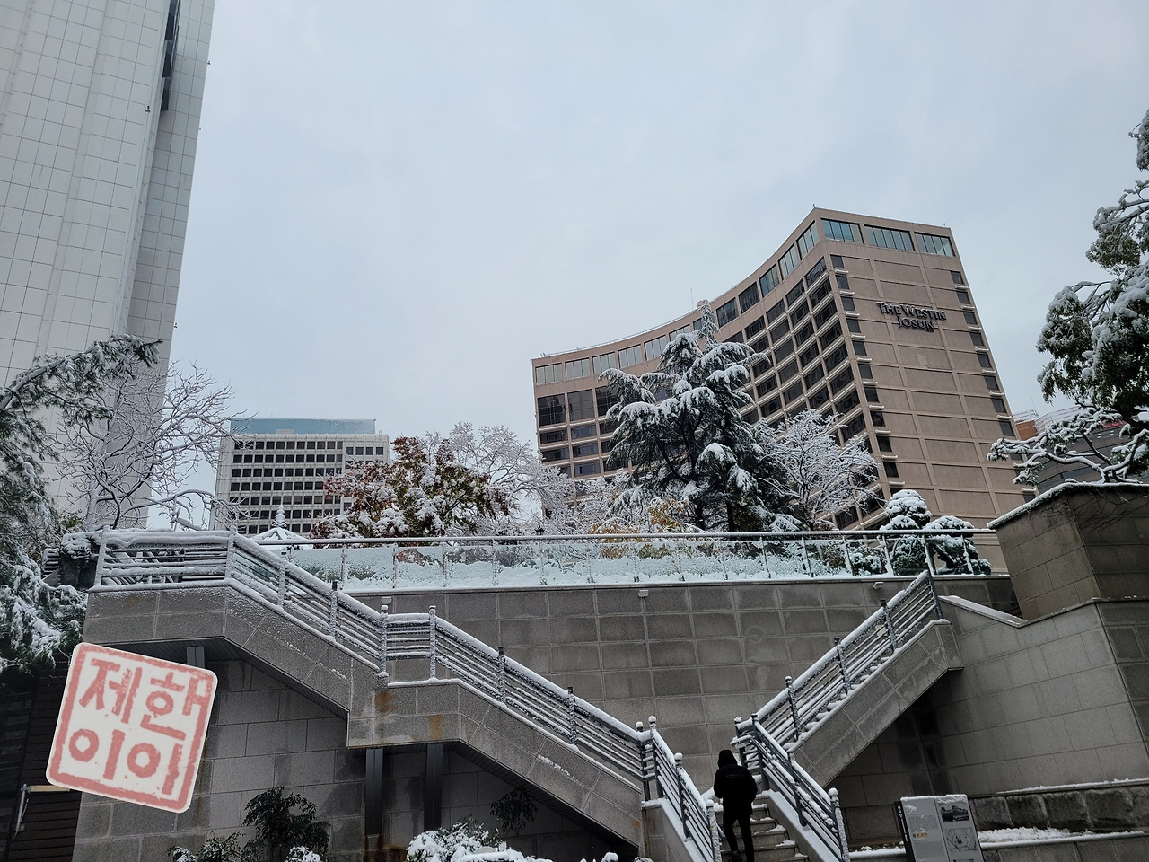 끝으로 설산에 우뚝 솟은 남산타워를 휴대폰에 담고, 덕수궁 대한문이 있는 시청역에서부터 환구단, 청계천 모전교, 광통교, 장통교를 지나 수표교까지 눈 내리는 한양나들이는 을지로 3가에서 멈췄다.