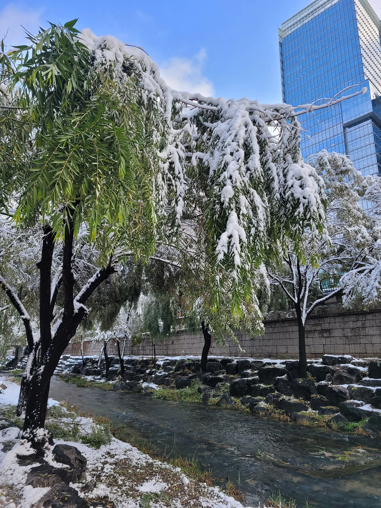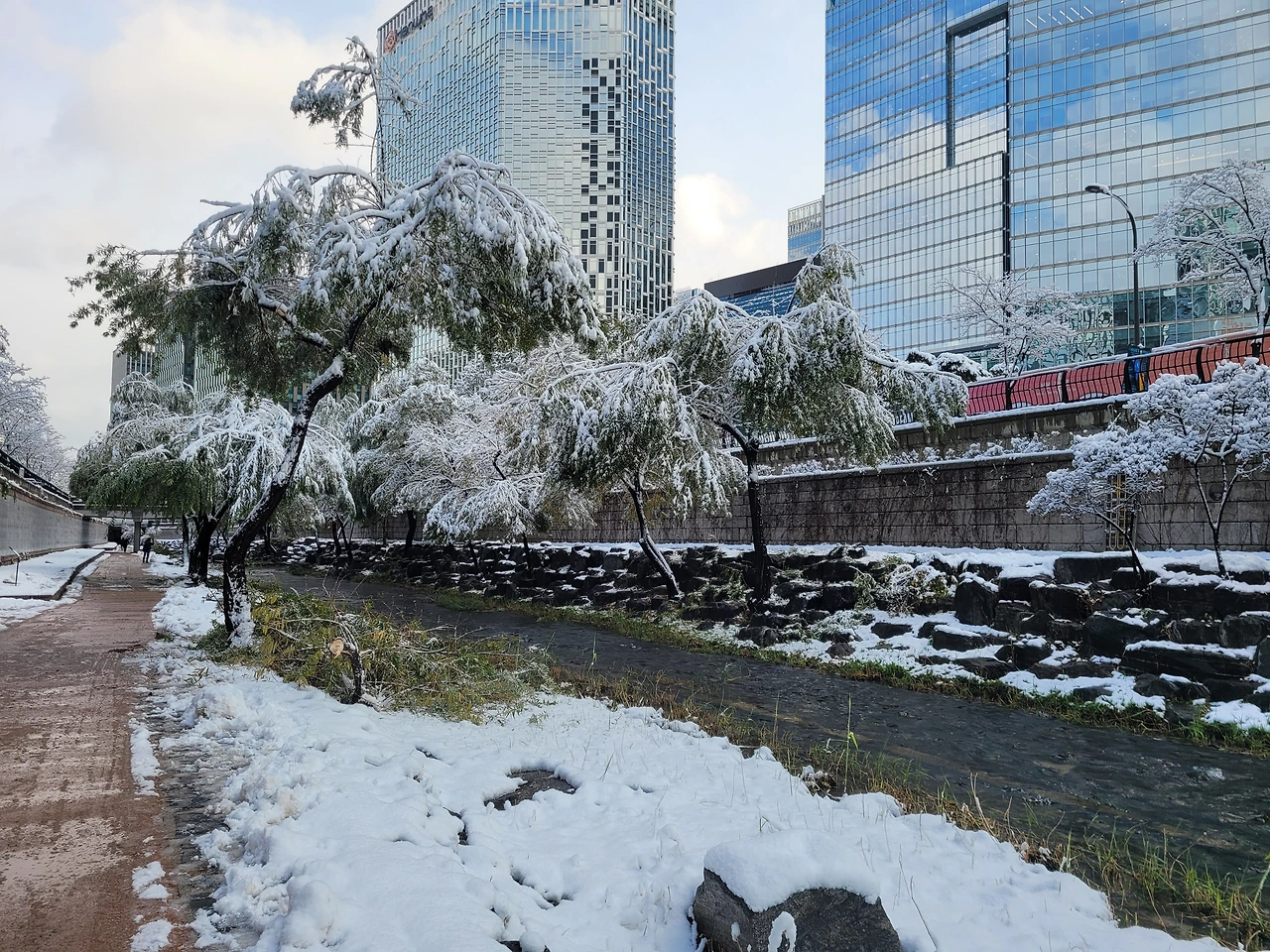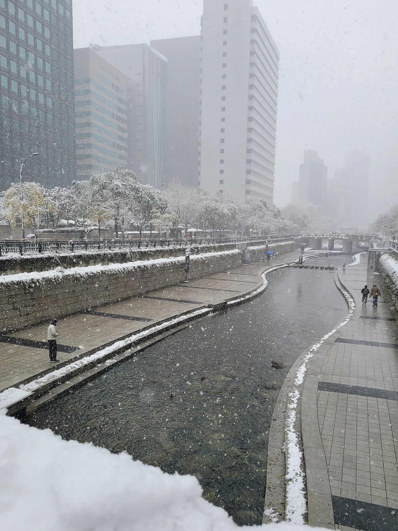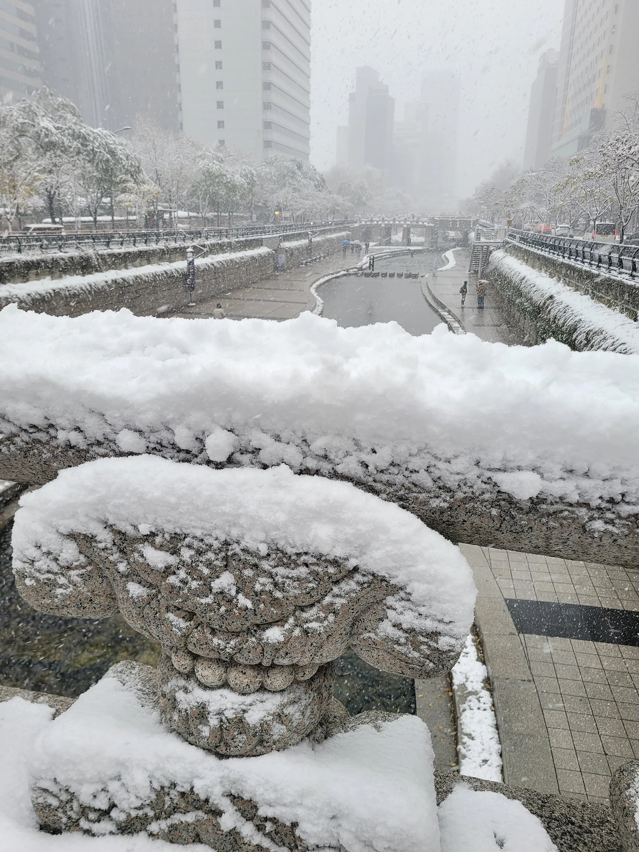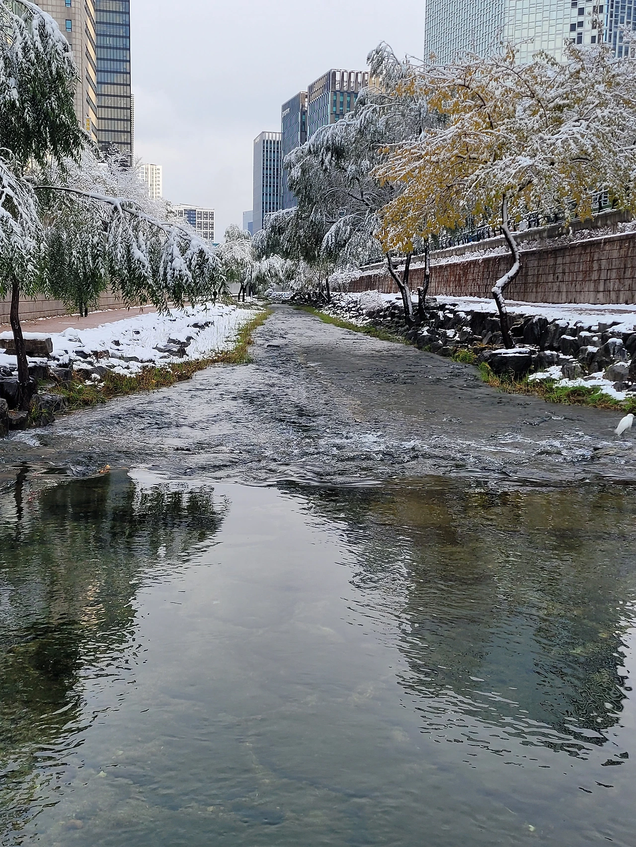 한 시간쯤 지나서 눈발이 조금씩 약해져서 본격적으로 청계천을 걷기로 했다.