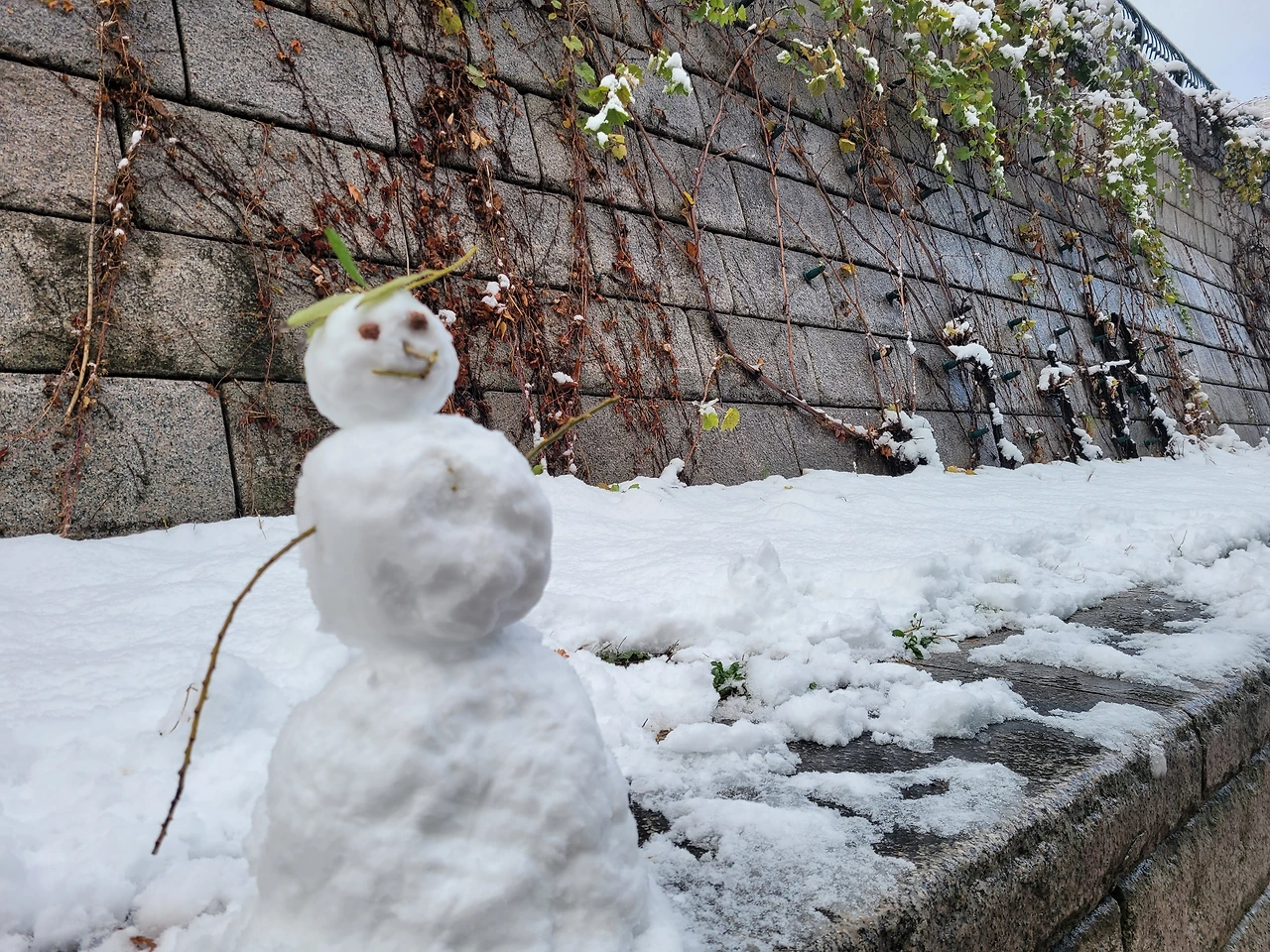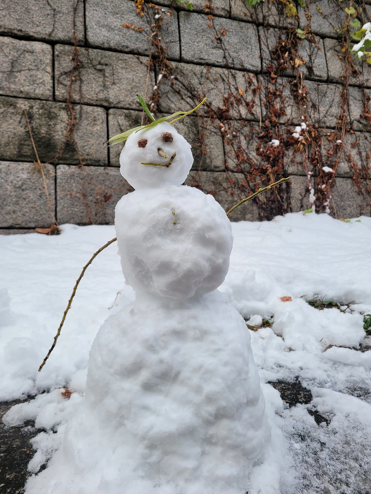 빠른 걸음에도 놓칠 수 없는 풍경, 그리고 누군가 만들어 놓은 눈사람.