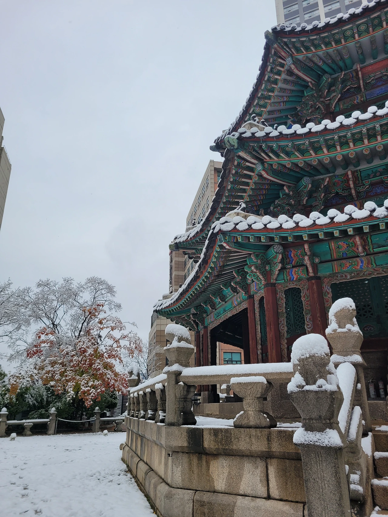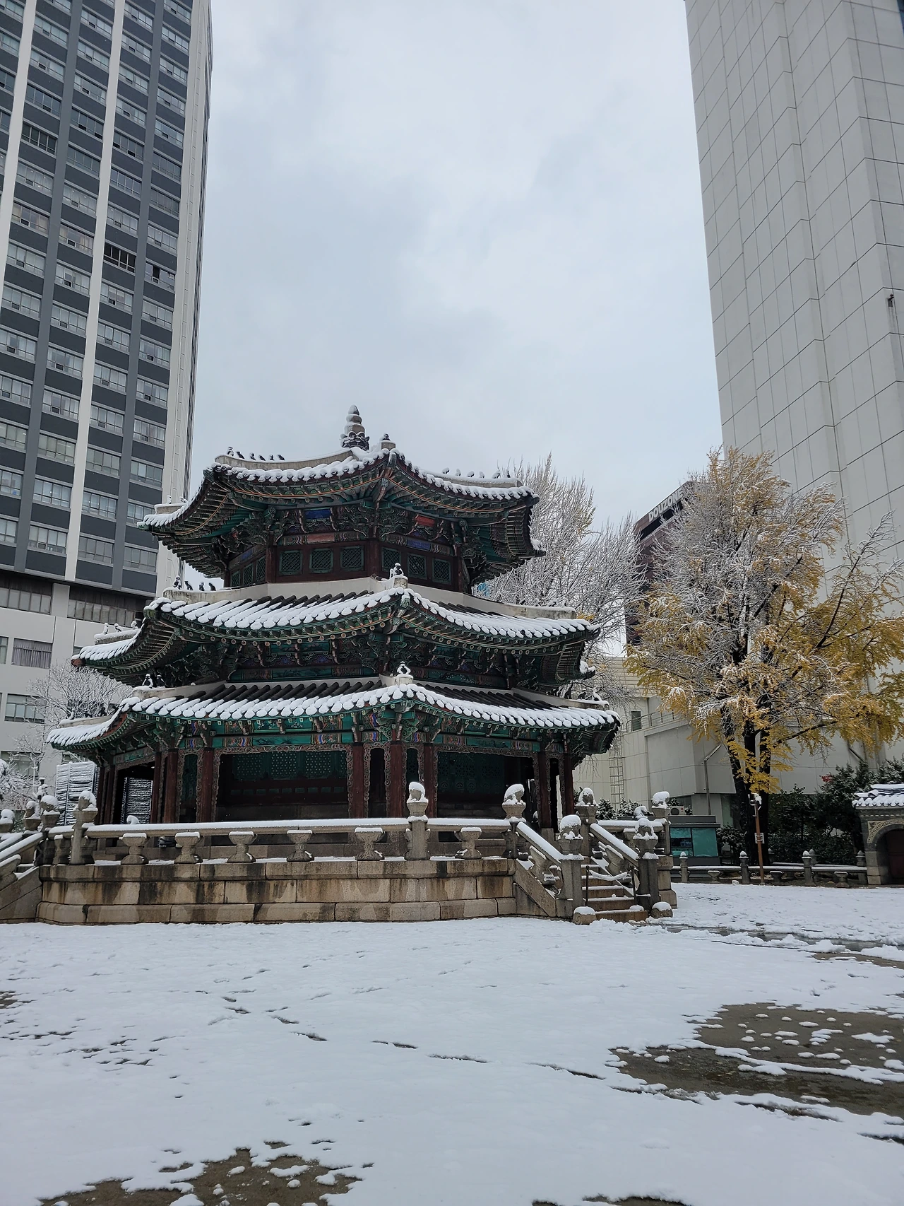 시청 광장은 개장을 앞둔 스케이트장 공사로 가림막이 쳐있었고, 우뚝 솟은 크리스마스트리가 눈에 들어왔다. 그리고 덕수궁 대신 건너편 환구단에 들리기로 한 나와 일행들. 신호등을 건너 대한제국시대 지어진 황궁우과 환구단으로 갔다.
