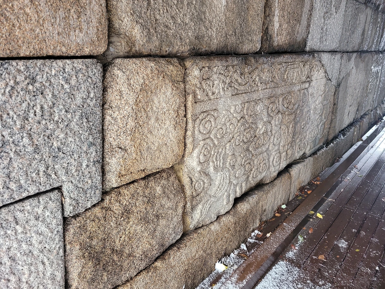 눈바람을 뚫고 모전교 계단으로 내려와 광통교로 향했다.