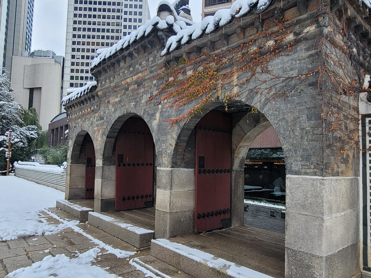 원래는 덕수궁 돈덕전이 목적지였으나, 덕수궁 대한문은 굳게 닫혀있었고, 대신 공지문이 붙어있었다. 폭설로 궁 안에 나무가 부러지거나 훼손되어 입장객의 안전을 위해 문을 닫습니다.