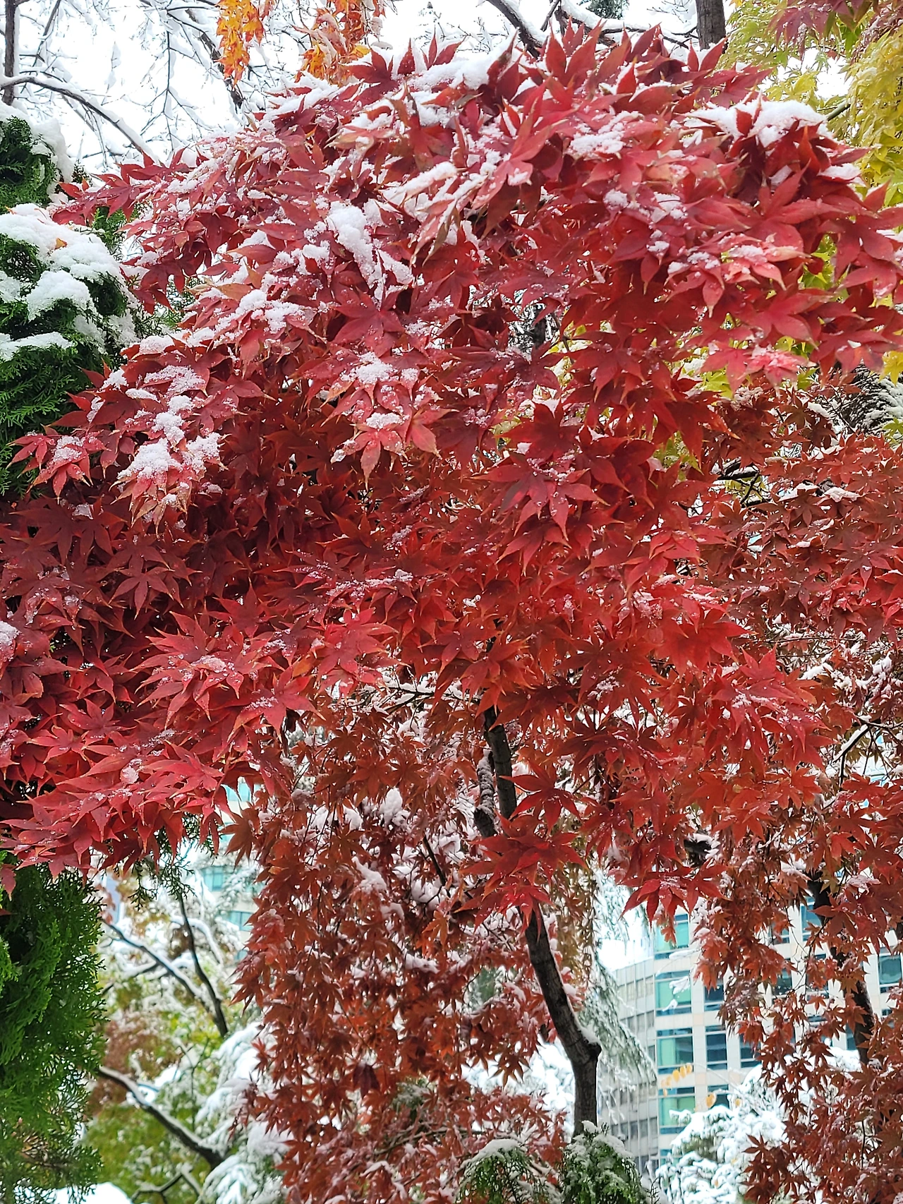 그런데 그치지 않고 내리는 눈과 칼바람 때문에 잠시 카페에 들어왔지만, 창밖 풍경을 감상할 수 없어 작은 유리창으로 아쉬움을 달랬다.