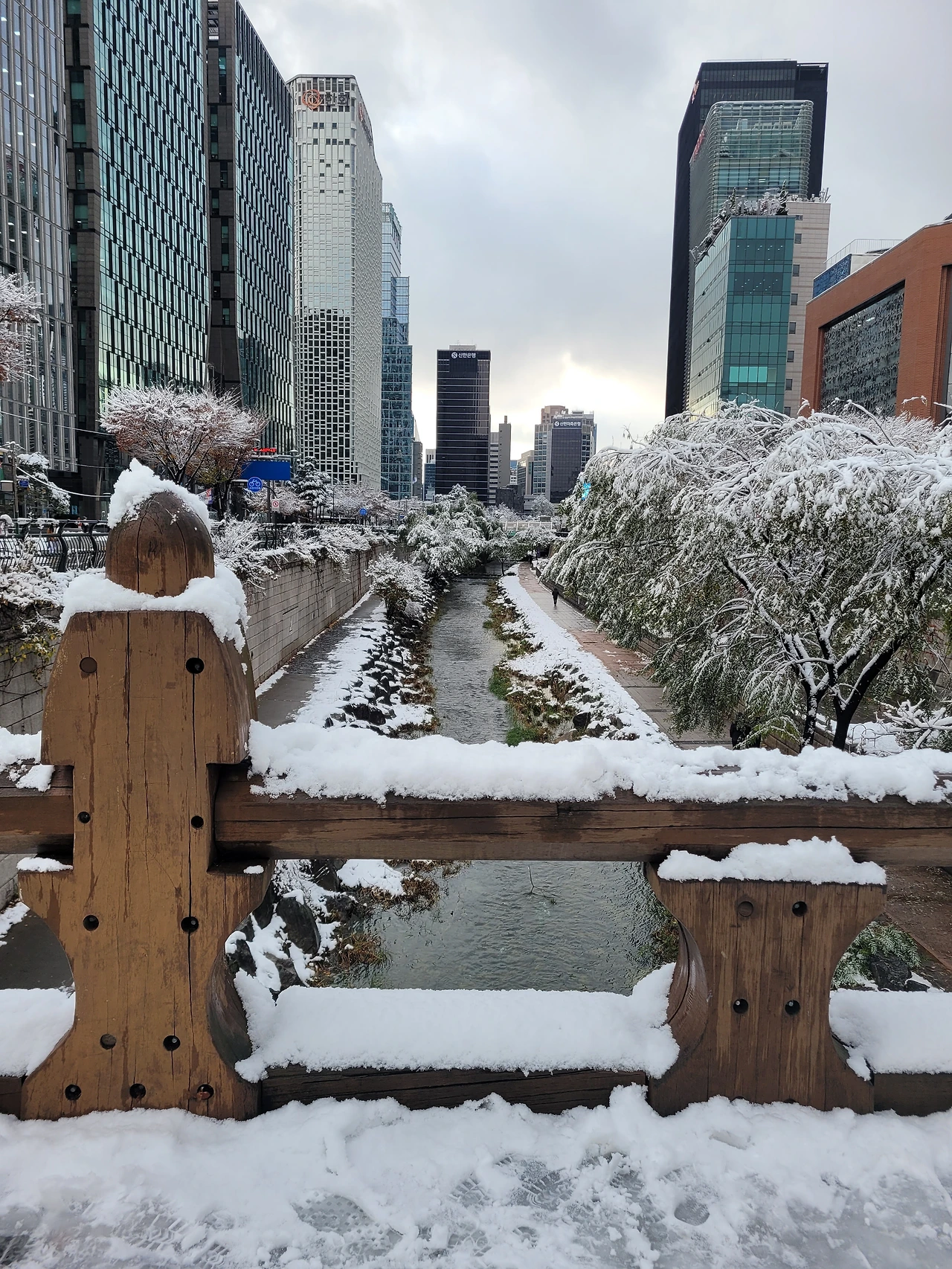 다행히 점점 눈발이 약해져 청계천 걷기는 한결 나았다.