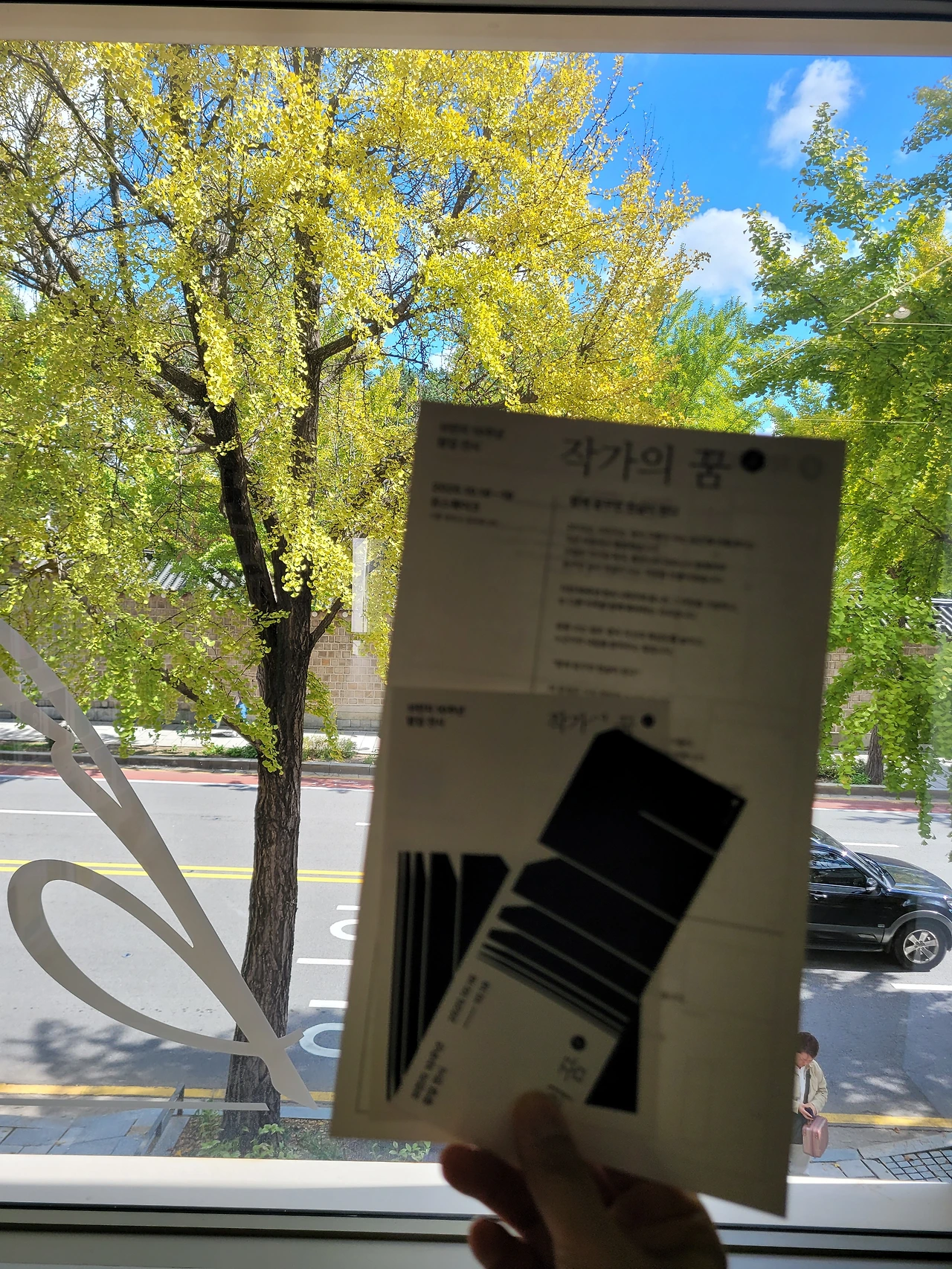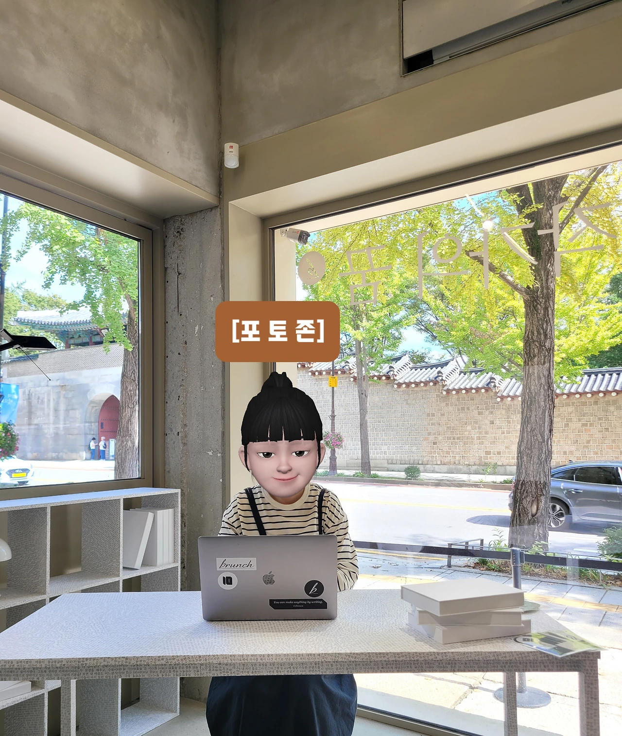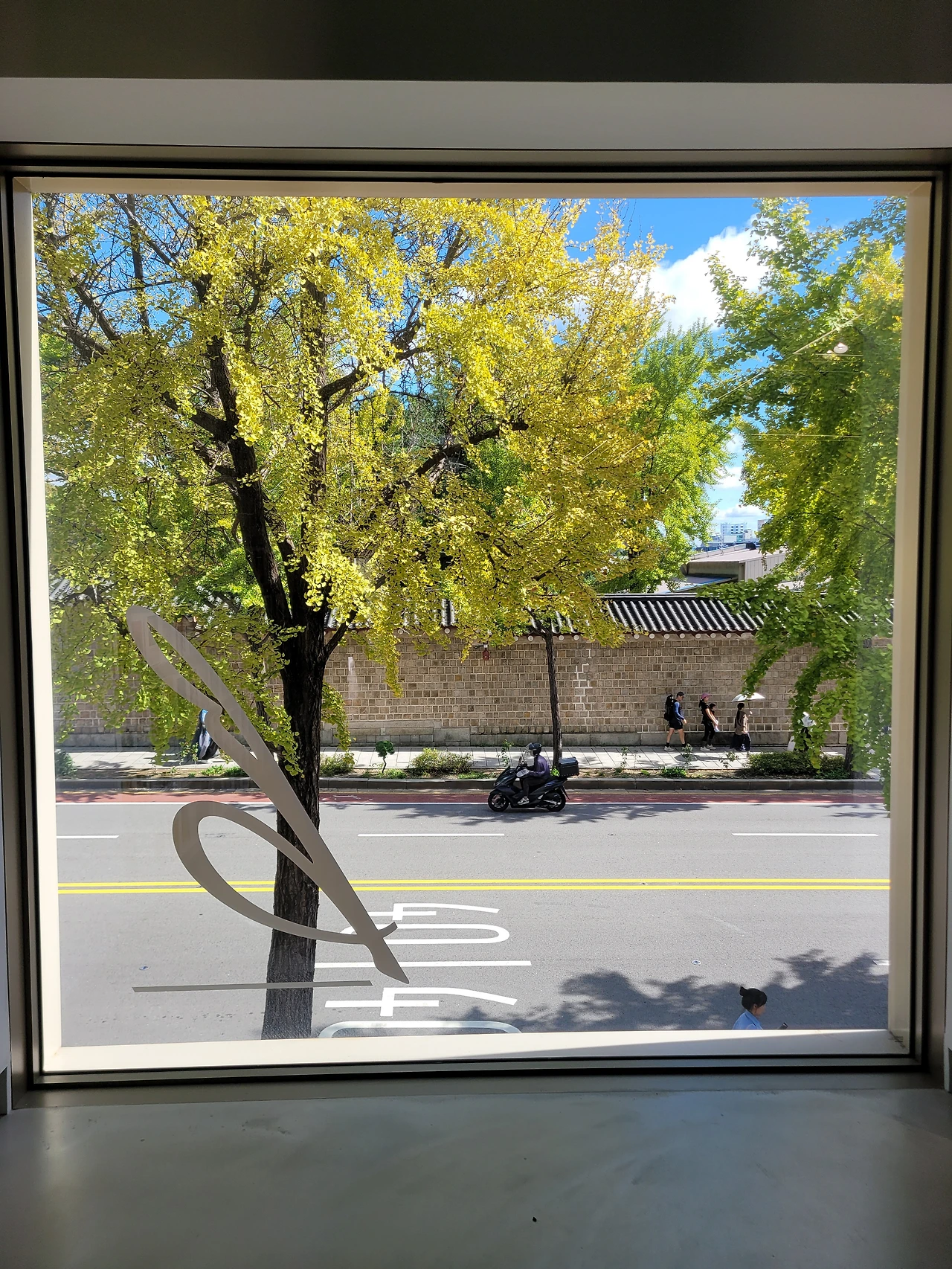 1층을 둘러보고 2층으로 올라가니 창밖으로 보이는 경복궁 담장이 한컷의 사진 같았다.