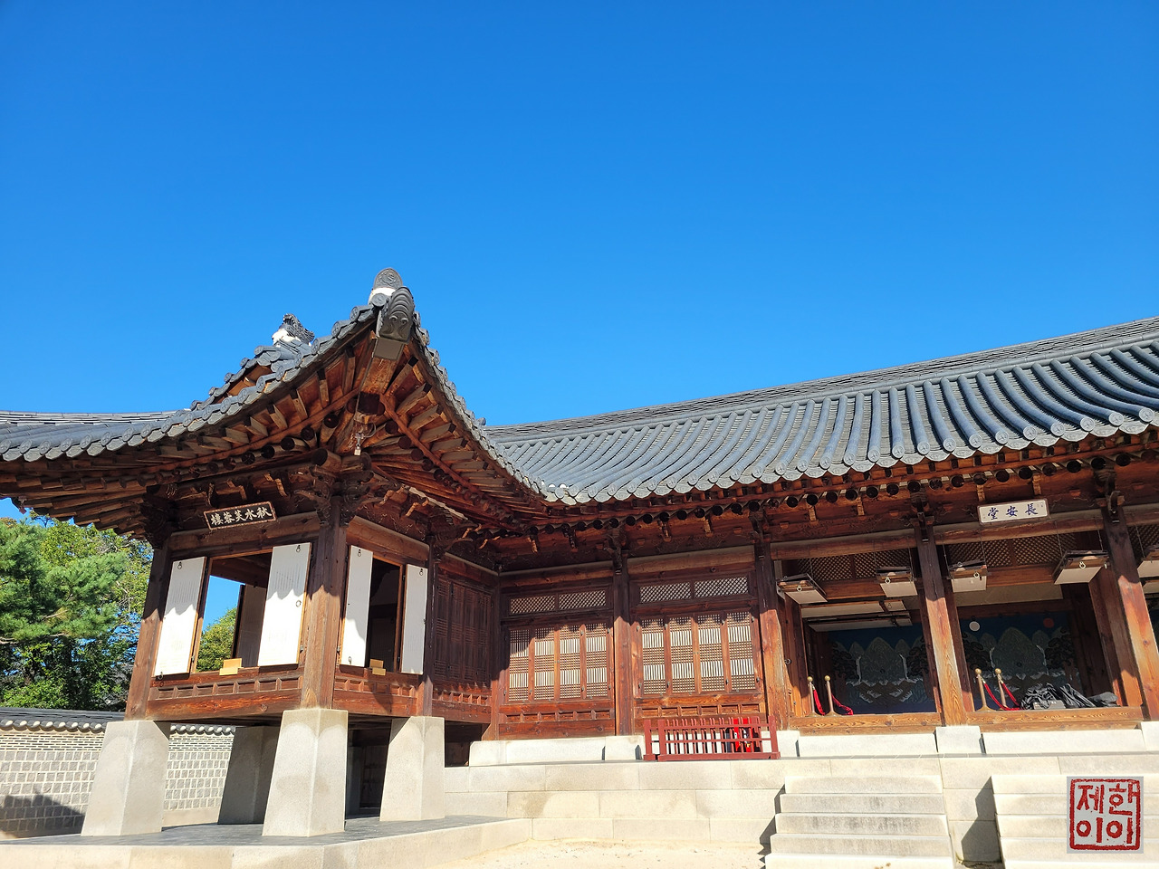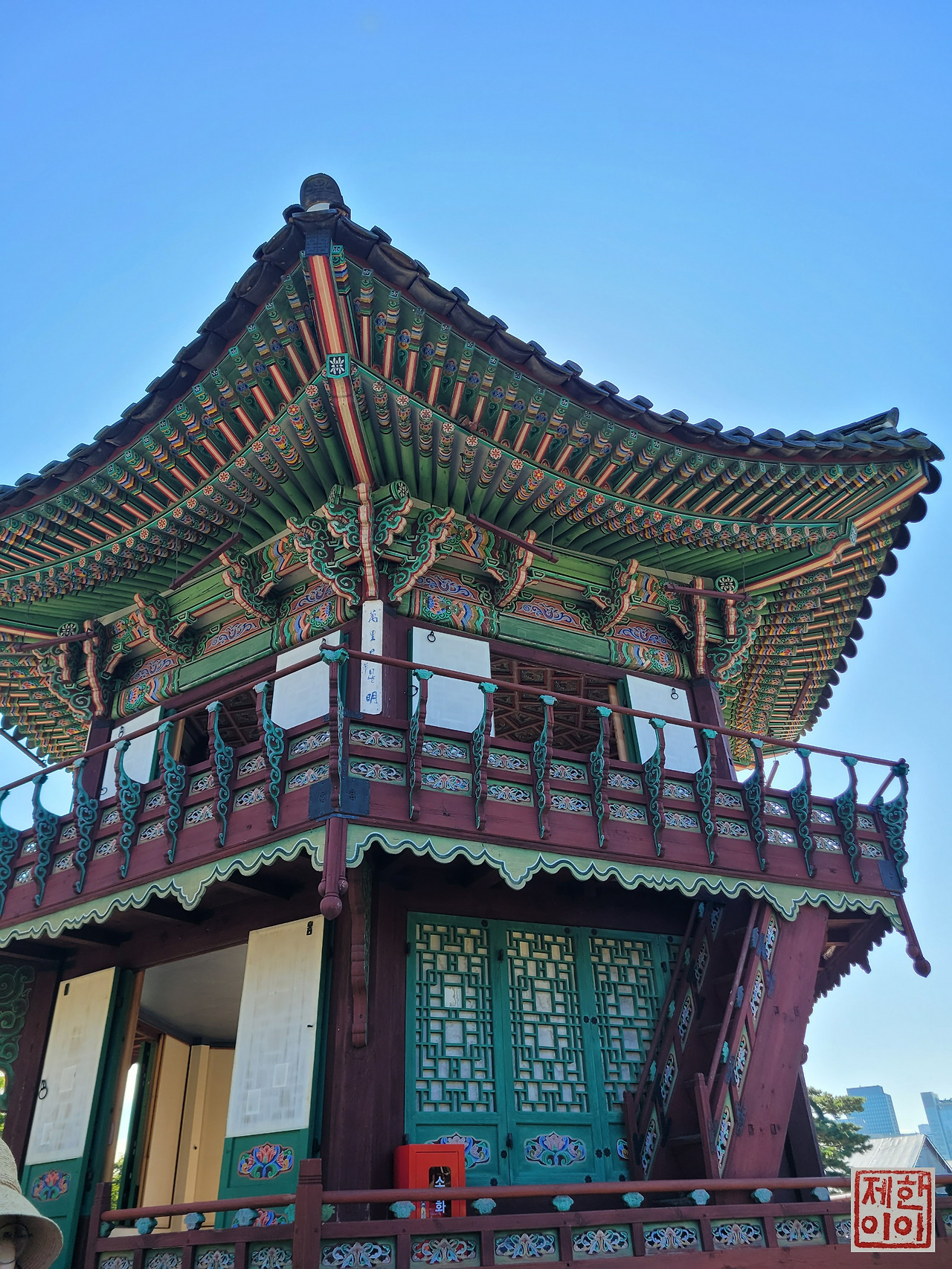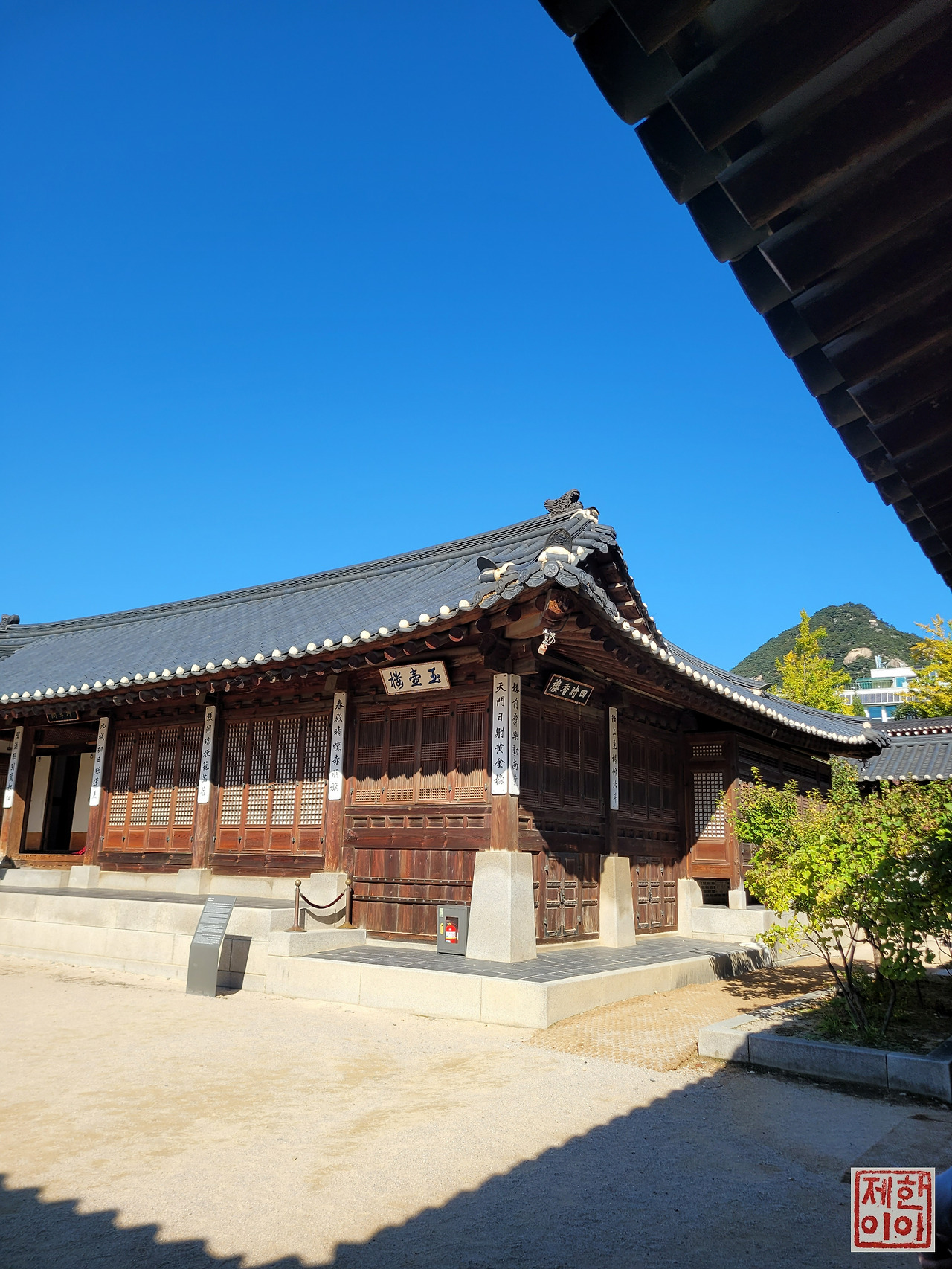 지붕 위 까치가 "잘 둘러보고 가~"라고 하는 것 같았다.