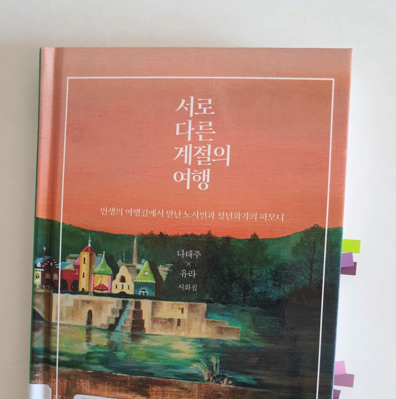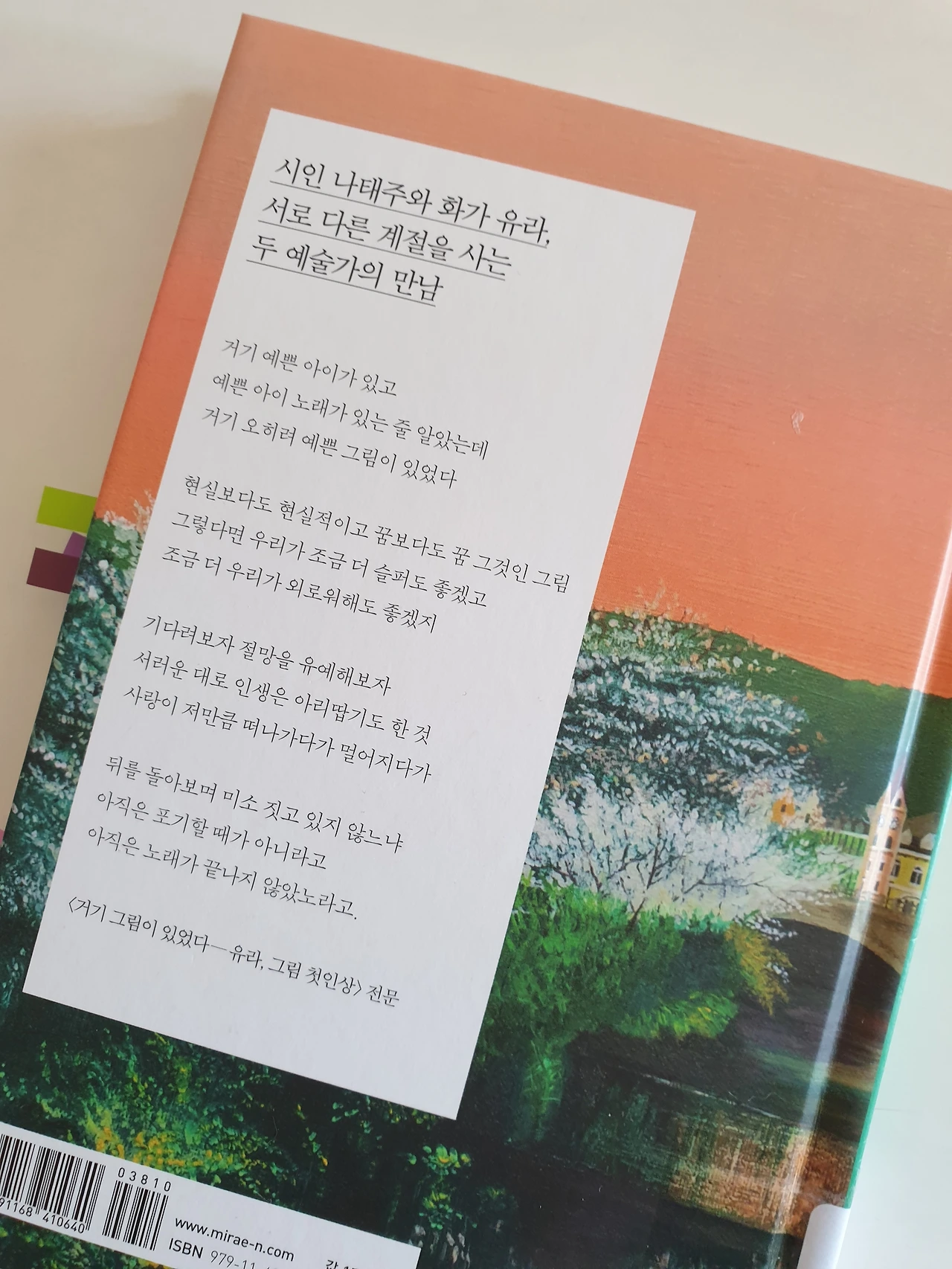 '나태주' 시인과 그룹 '걸스데이'의 멤버 '유라'의 합작품이라고 할 수 있겠습니다. 나태주 시인의 시와 유라의 유화가 함께 실려있습니다. 계절 이야기가 시와 그림에 담겼습니다.