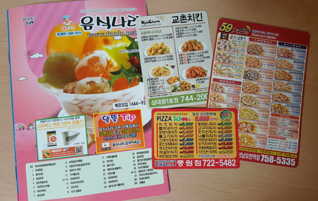 저 메뉴 전단지를 붙인 것 같다. 음... 근데 왜 나는 아까 하던 정보검색을 뒤로 하고 어느 순간 이 전단지를