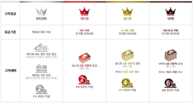 우선 멤버십 제도에는 '등급제'가 존재한다. 즉, 구매 횟수나 구매액에 따라 차등적으로 멤버십 내 고객을