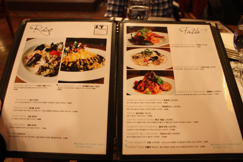 우리가 제일 먼저 했던 일은 메뉴판에서 메뉴를 고르는 곳이었다. 우리는 네 장으로 된 메뉴판을 보면서