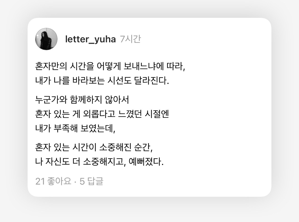 꼭 혼자 보내는 시간과 닮아있다는 생각이 들었다.
