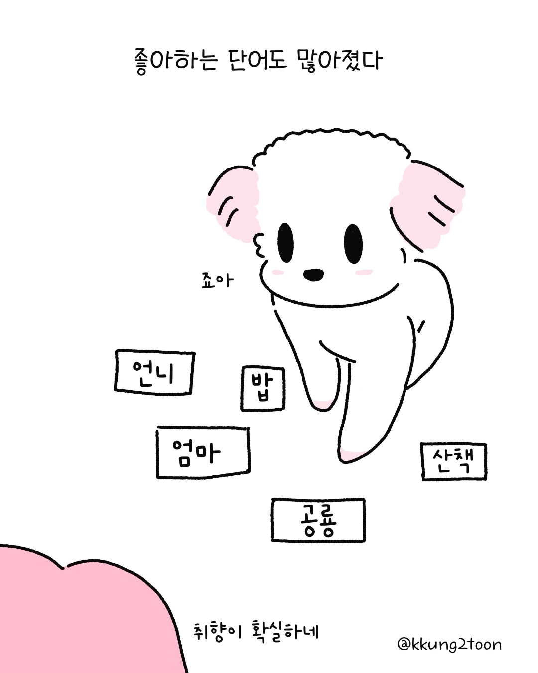 쿵이는 요즘 알아듣는 단어들이 많아졌다.