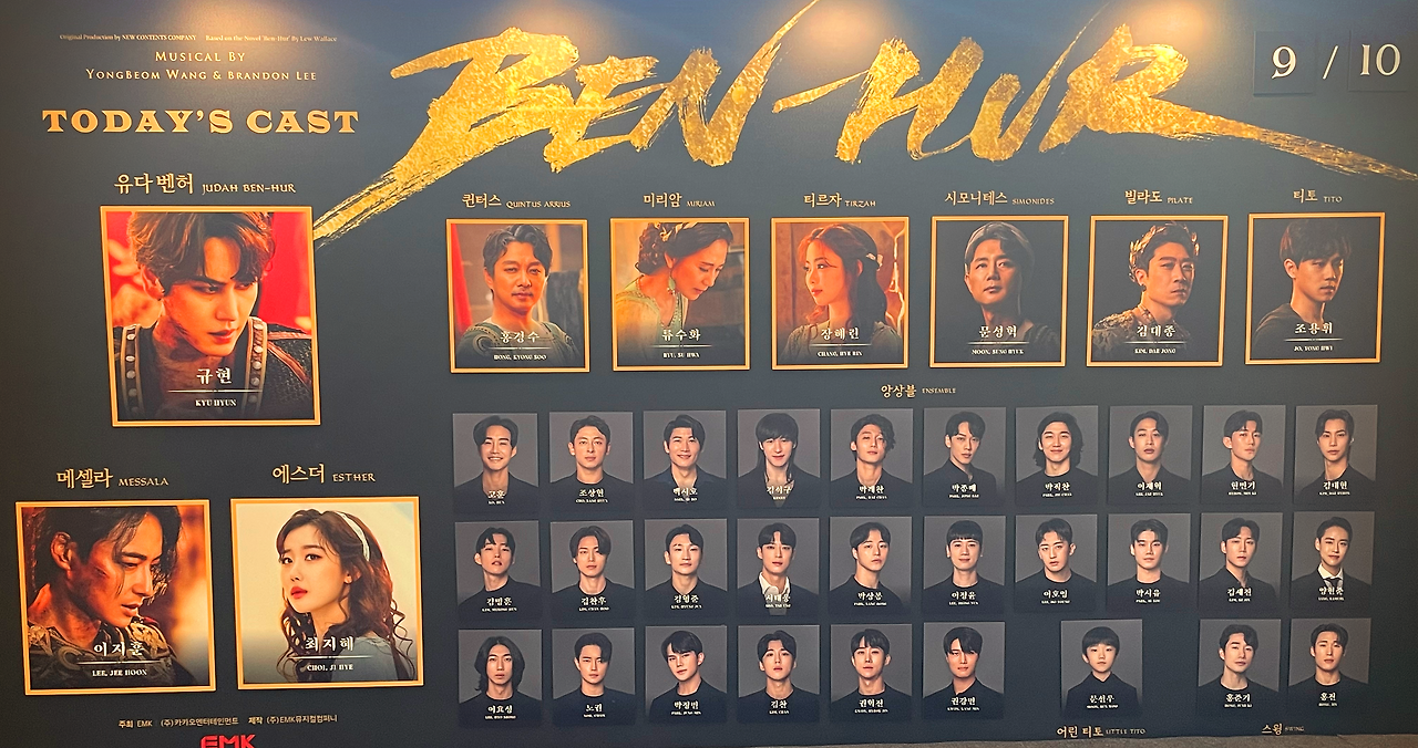 정말 나온 배우들이 다 훌륭했지만 그럼에도 제일 기억에 남는 건 옥살이를 하다가 한센병을 앓게 된 벤허(규현)의 어머니인 미리암의 넘버였는데 아들을 생각하며 기도를 하는 그 장면이었는데 그 절절함이 무대를 순식간에 장악해서 눈물을 계속 쏟게 만들었다.