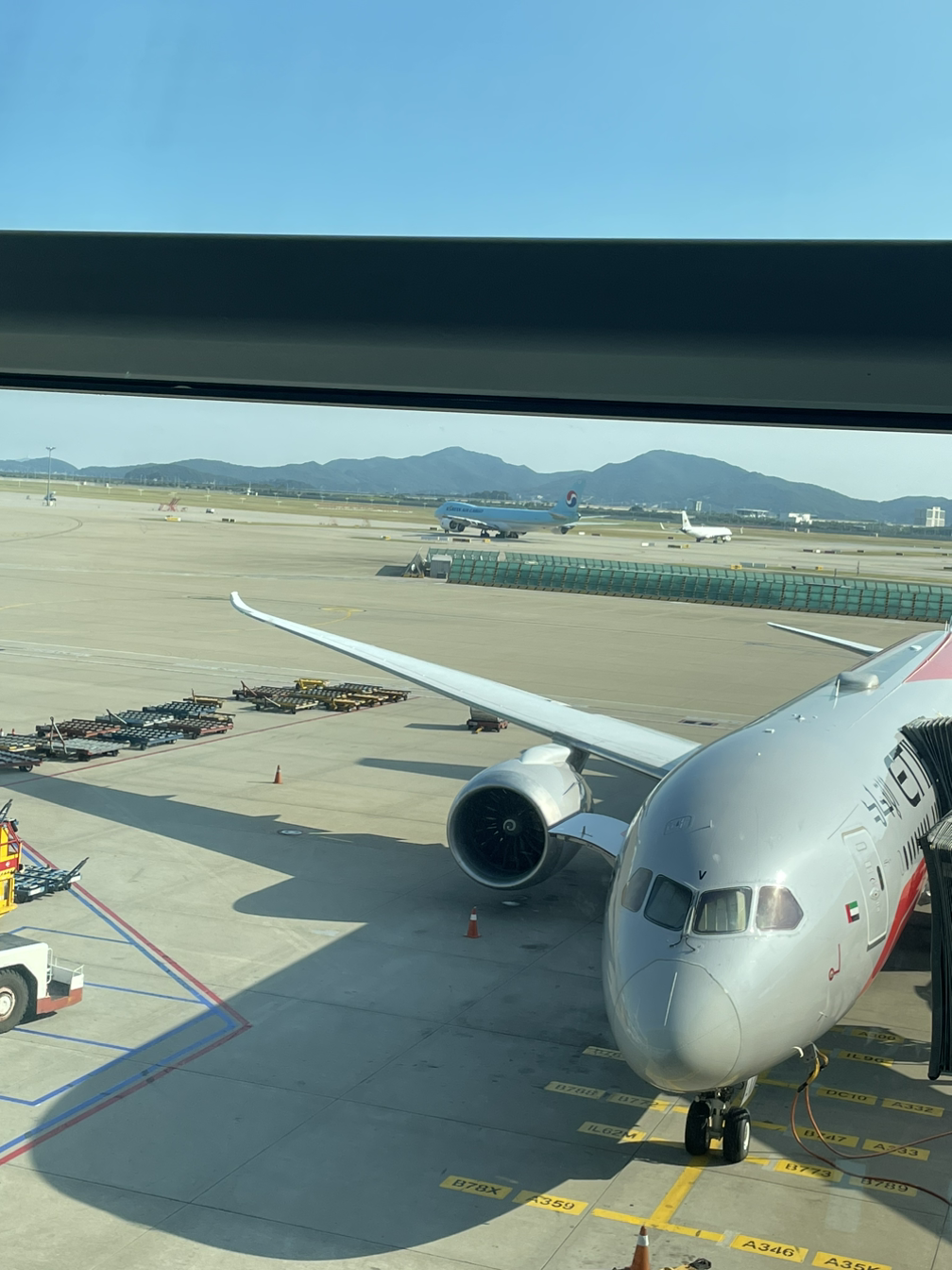 그 장시간의 첫 비행을 마치고 경유하는 아부다비에 도착해서도 정말 무사히 넘어가지 않았다. 경유시간에 못 잤던 잠을 보충하면서 핸드폰을 하다가, 공항 와이파이보다 미리 로밍해 갔던 데이터가 먼저 잡히면서 데이터를 다 써버리지 않나(이건 진짜 좀 바보 같기도ㅠㅠ)..