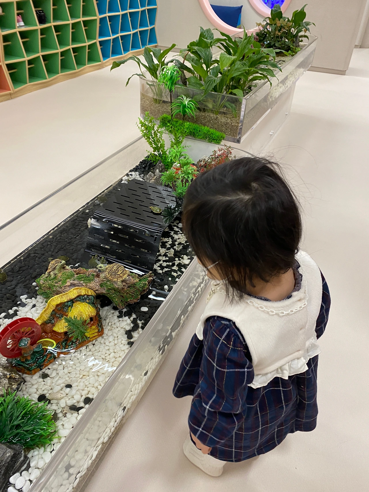 너무 이르게 일대일 케어의 시간을 끝내버리고서 아이에게 가지게 된 유일한 미안함은 내 아이가 겪는 세계만 너무 얕은 건 아닐까 하는 마음이었다. '사회생활'을 한다는 측면에서 넓어지는 세계는 있겠지만 아무래도 엄마 혹은 아빠가 일대일로 케어해줄 때보다는 많은 것을 경험하지 못하는 건 아닐까 하는 걱정이 생겼다. 육아를 하면 매일매일 '오감놀이'같은 것을 하게 해주고 있을 거라 생각했지만 일하는 부모에게는 너무나도 큰 에너지를 요구하는 일이다. 많은 아이들이 '엄마/아빠표 놀이', 문화센터', '방문미술', '여행', '키즈카페' 등등의 경험을 하며 세계를 넓혀가는 동안 우리 아이만 심심한 일상을 보내는 건 아닐까 걱정했었다. 그런 걱정은 우리 회사의 어린이집에 아이를 보내게 되면서 사라지게 되었다. 첫 적응을 위해 아이와 함께 어린이집에 들어갈 수 있었던 첫 주간에 놀라지 않을 수 없었다. 나마저도 영감이 샘솟을 것 같은 다채로움이 아이를 기다리고 있었다.