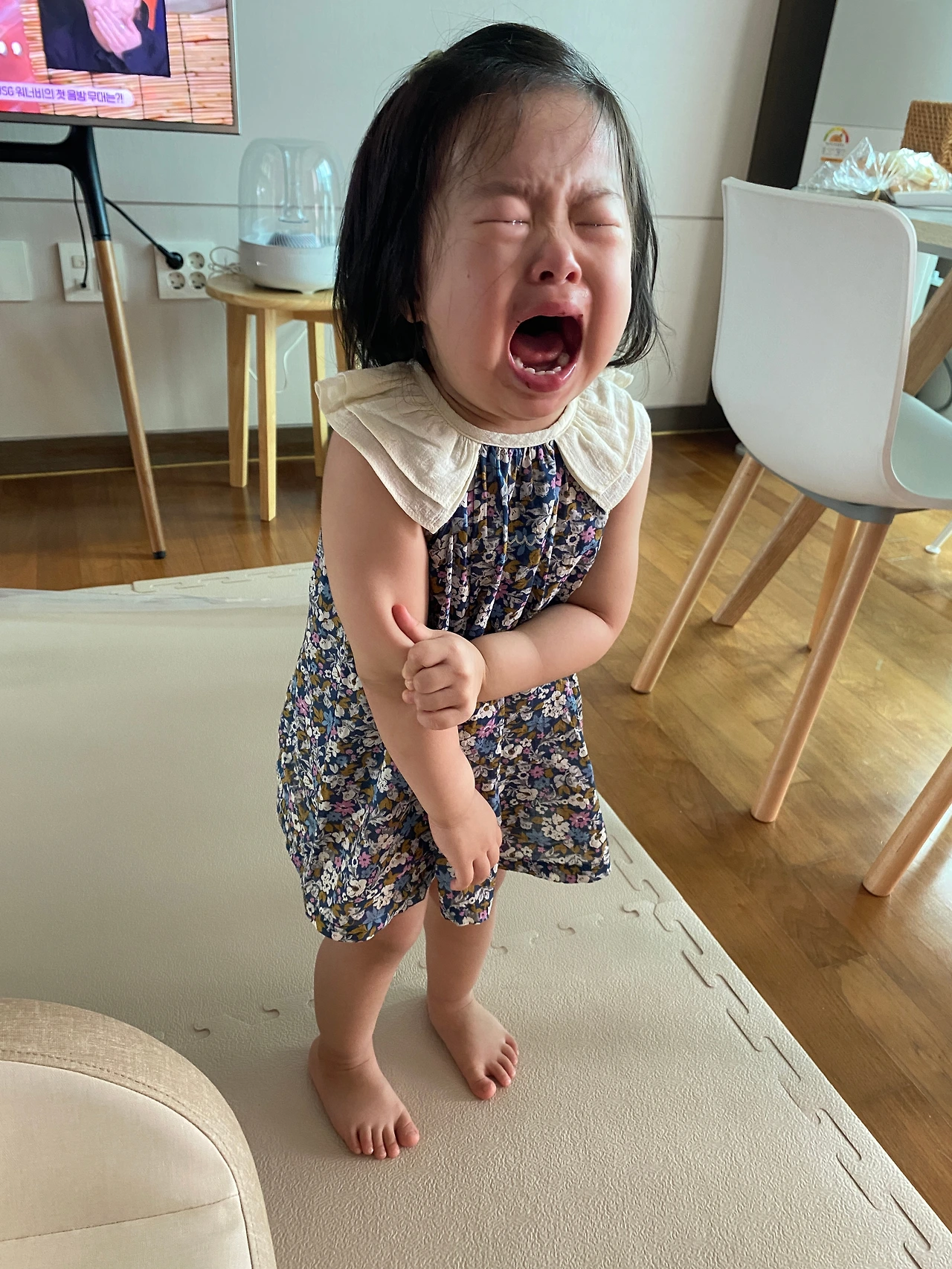 - 하기 싫은 것과 하고 싶은 것이 너무나도 뚜렷하다. 하기 싫은 걸 요구하거나, 힘으로 제압해하려 치면 그냥 냅다 누워버린다. 바닥에 아기 매트가 있으니 다행인데, 아닌 곳에서 그럴까 걱정이다. 그런데 소름인 점은 아기 매트가 없는 곳에선 안 그런다. 매트 위에선 그래도 다치지 않는다는 것을 이미 안 것 같기도 하다.