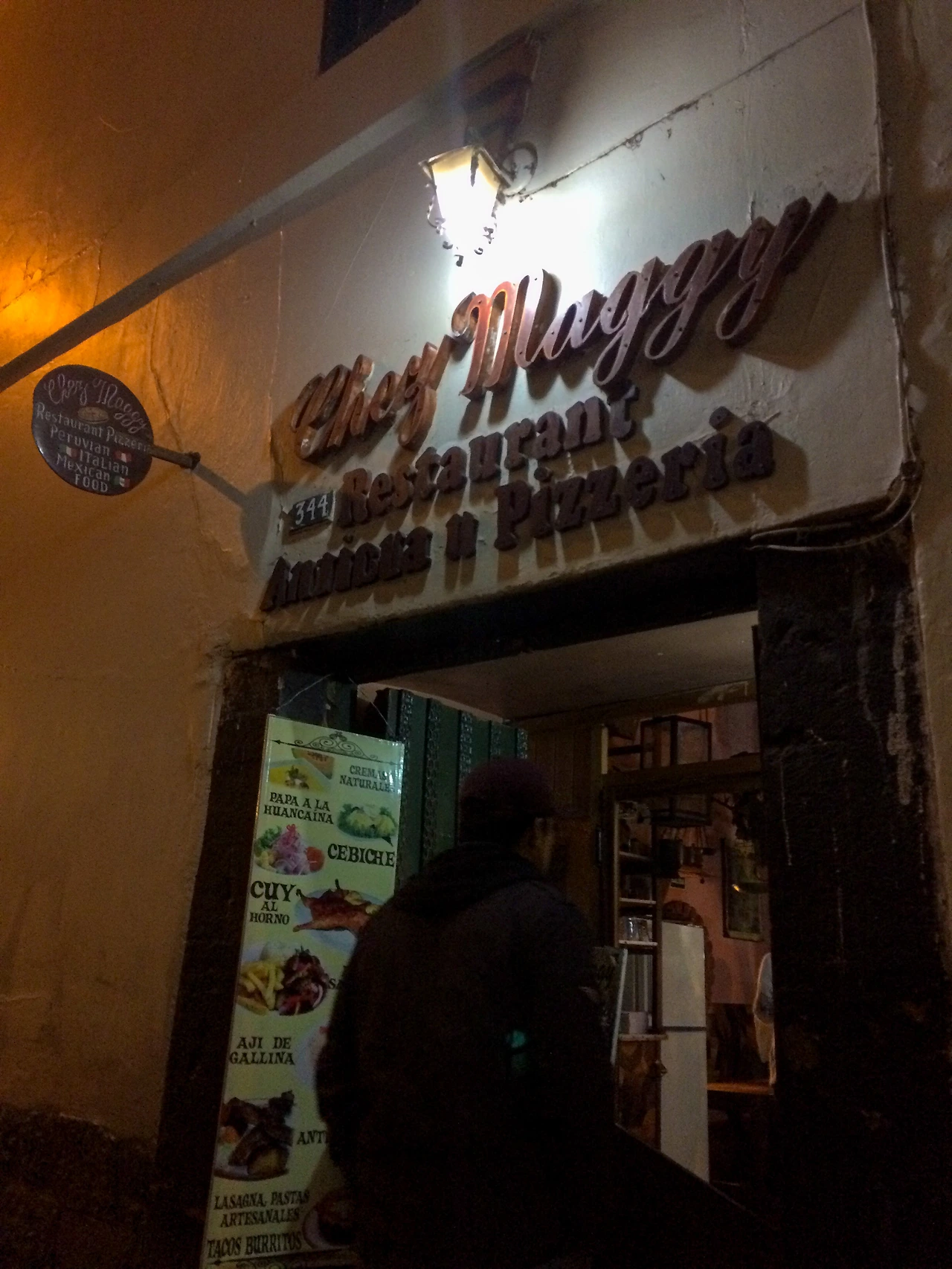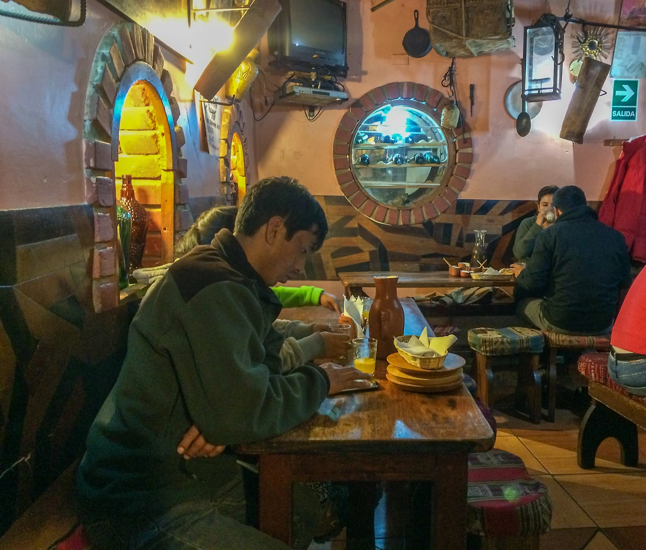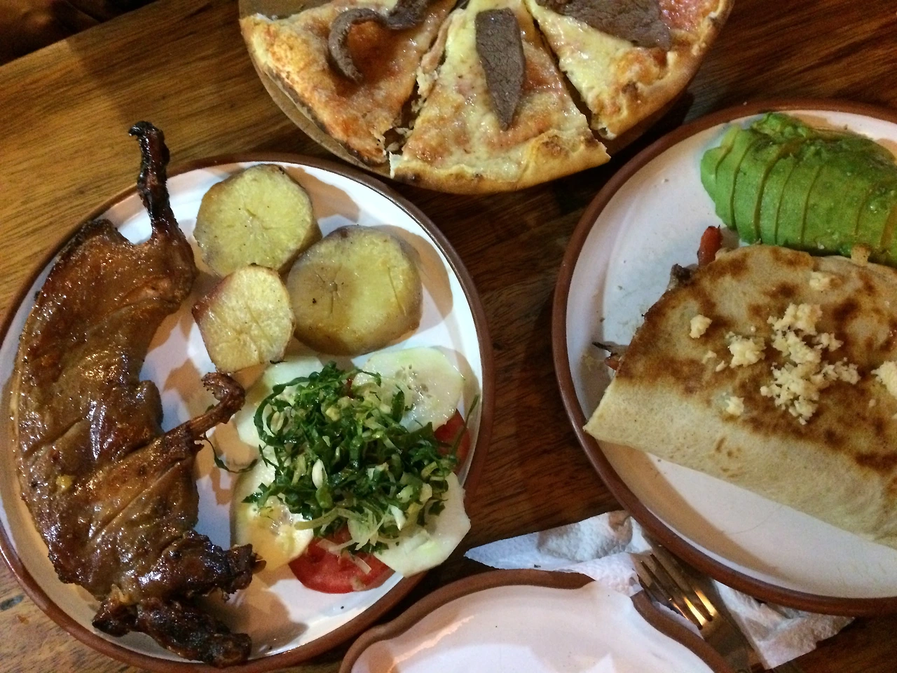 쇼핑을 마친 우리는 가게 바로 맞은편에 위치한 식당에서 꾸이를 먹어보기로 했다. 여행 오기 전 다큐멘터리를 보며 한번 도전해봐야겠다고 생각했는데, 막상 눈앞에 있으니 그 비주얼에 마음이 실로 약해졌다. 음식은 순간적인 즐거움이라 오감으로 즐겨야 하는데, 이럴 때만큼은 좋은 시력과 청력, 예민한 후각과 미각이 원망스럽다. 쿠스코의 현지 느낌이 물씬 풍기는 가게에서 맛본 꾸이의 맛은 평생 잊지 못할 것이다.