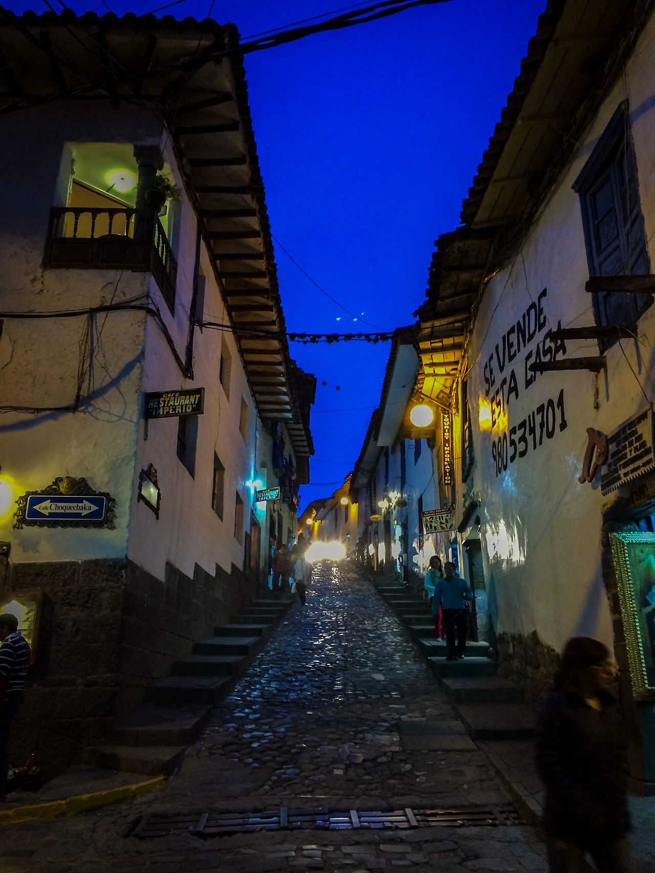 해가 뉘엿뉘엿 산 너머로 저물어갈 무렵, 리마에서 만난 친구들과 함께 쿠스코에 도착했다. 해발 3,600m에 서 있으니 왠지 모르게 숨쉬기가 답답했다. 도시를 둘러볼 새도 없이 오늘 묵을 괜찮은 숙소를 찾기 위해 가파른 돌계단을 올랐다. 고산지대에 있으니 겨우 11kg의 짐 무게도 배로 느껴져 계단 하나를 오르기도 힘겨웠다. 한편으로는 이 높은 고도에서 돌을 날라 집을 짓고 골목의 벽을 다지며 도시를 만들었던 옛 잉카인들의 모습이 그려지며 새삼 대단하다는 생각에 숙연해진다.