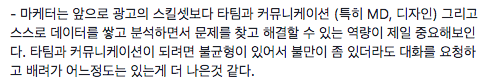 문과의 90%는 마케터가 되고 싶다는 이야기를 들은 적이 있다. 비개발자가 대부분인 이 포지션에서 사내 프로덕트에 들어간 최소한의 개발 지식이 없으면 일은 하되 엄청 딜레이 되며 속도가 붙기 힘들 것이다. 나름 말이 잘 통하는 사내 개발 스승을 두어 많은 이야기를 나눠보자.