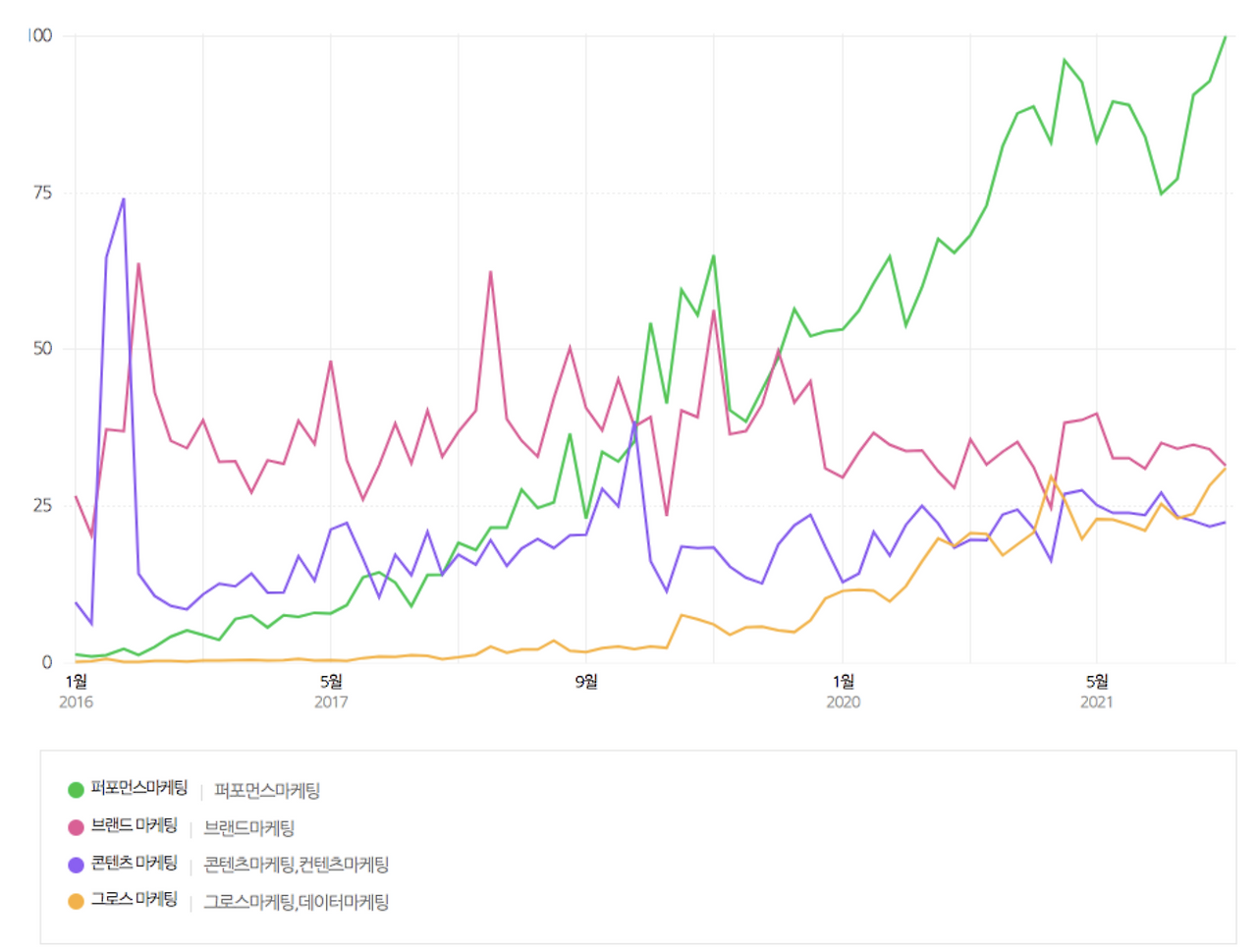 퍼포먼스와 그로스 마케팅에 대한 시장의 관심은 계속하여 증가하였고(그림1) 그런 관심은 곧 예산을 디지털 매체 쪽으로만 쏠리게 하였습니다(그림2) 그로 인하여 매체들의 비딩가는 치솟았으며(그림3) 한편으론 플랫폼의 규제로 인하여(애플의 ATT 및 2023년에는 구글의 크롬 쿠키 지원 중단 등) 퍼포먼스 마케팅 시장은 계속하여 쉽지 않을 것으로 예상합니다. 여하튼 1%의 방법을 찾기 위한 별동대 같은 팀입니다.
