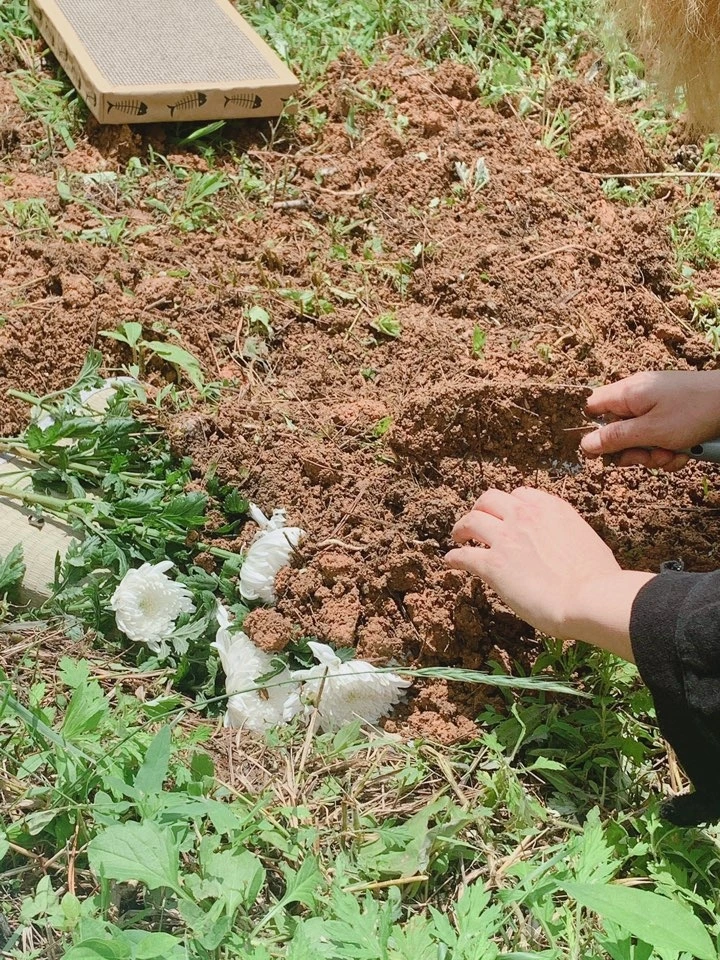 <처음으로 구조한 까만 길고양이의 작은 장례식. 나는 아이를 살리지 못했다. 마음도 주지 않았다. 밥 한번 준 적 없는 아이인데 그저 내 눈 앞에서 죽어가는 것을 모른척 할 수가 없어 병원에 데려갔다. 아이는 워낙 상태가 좋지 않았다. 입원 일주일 정도 즈음 나는 마지막임을 직감했는지 처음으로 아이를 만져주었다. 그간 살아내느라 너무 고생했다고. 오래 토닥여주고 만져주었다. 아이는 그것을 안다는듯이 고개를 끄덕이고 가까이 오고싶어했다. 그러나 아이는 그 날 내가 간 그 후 숨을 거두었다. 나는 많이 울었다 오래 우울했다. 삶과 죽음 오묘한 경계이서 완전히 죽음으로 넘어설때, 허무함이 밀려오는 것이 아니라 되려 삶에 대한 강렬한 감각을 느낀다. 살아있는것은 너무나도 신비하고 소중한 것이다. 이 날 이후 조금 더 빨리 살릴 수 있을때 움직여야겠다는 생각을 했다. 길고양이를 위한 급식소 하나를 만들었다. 거기에서 라운이도 만났다. 라운이는 두번째 구조이다. 라운이가 하루 하루 살아줘서 고맙다. 그것은 아마도 살리지 못한 까만 길고양이의 미련이나 안타까움 일수도 있다.>