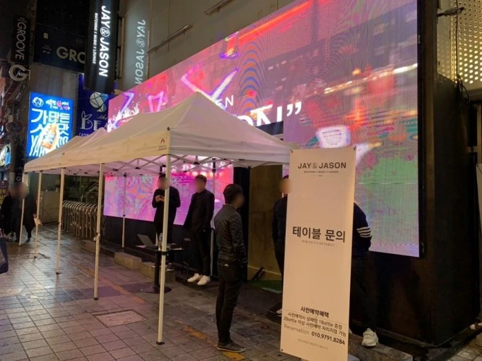 친구와 내가 10시도 안 된 이른 시간에 입장하려고 했더니 테이블이 5만 원부터라고 한다.