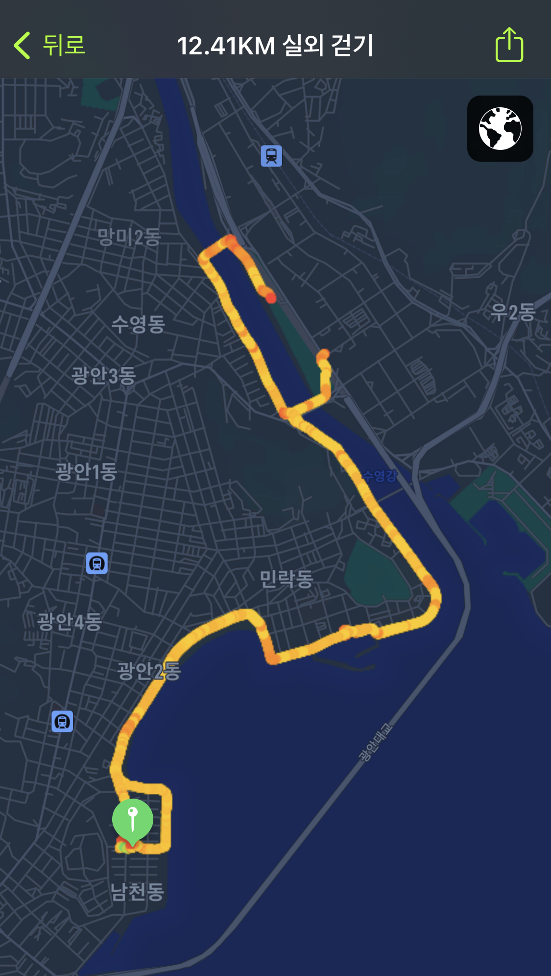 광안리 해변길을 지나 수영강 산책로를 따라 센텀을 찍고 다시 경성대 쪽까지 걸었다.