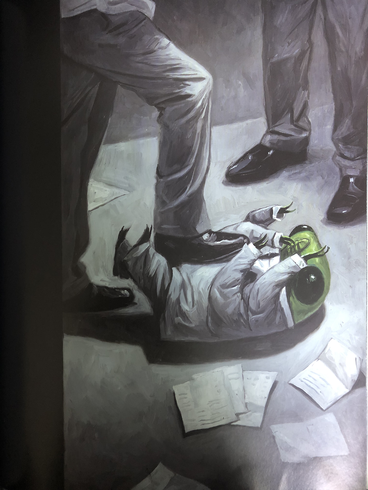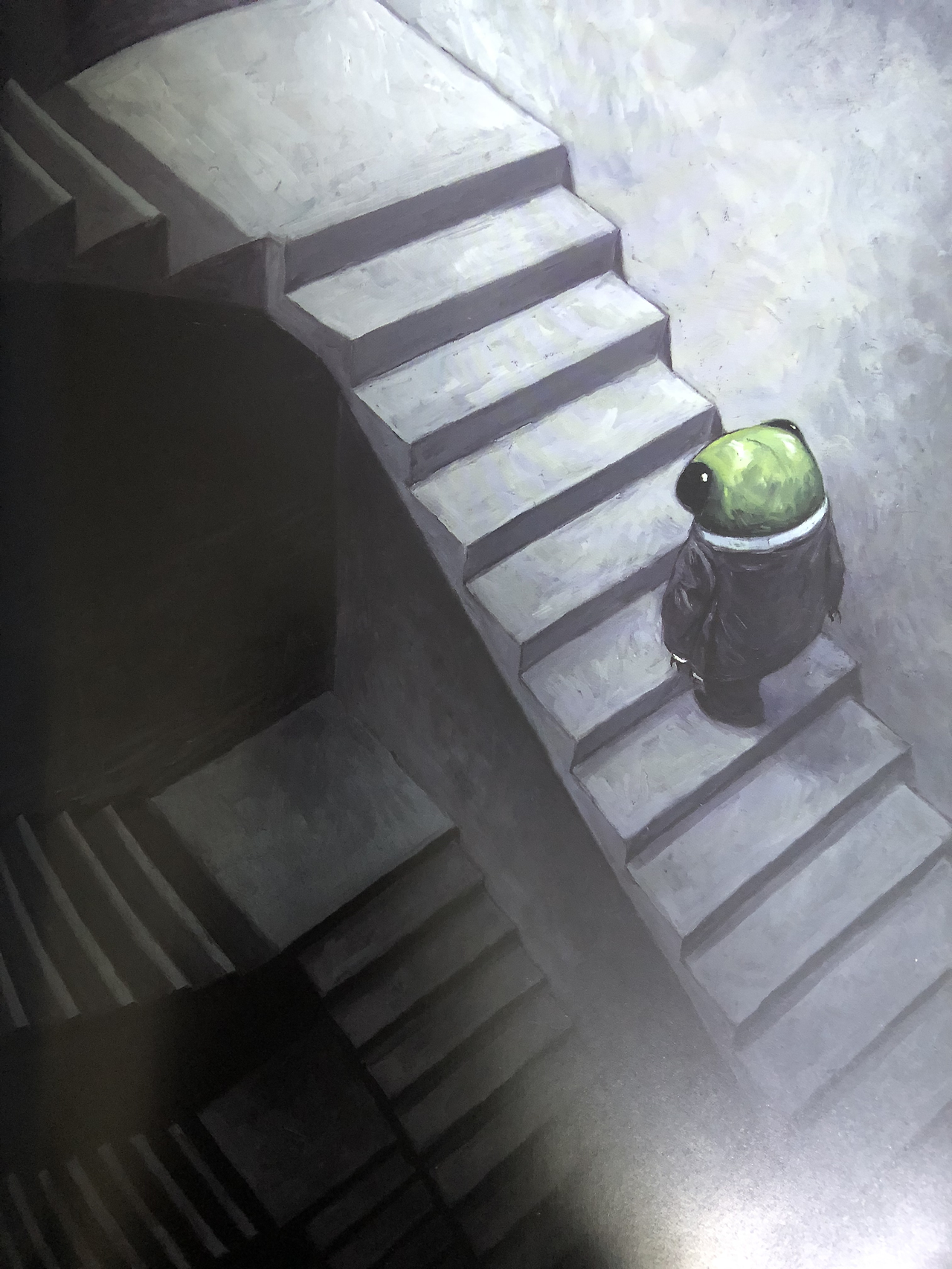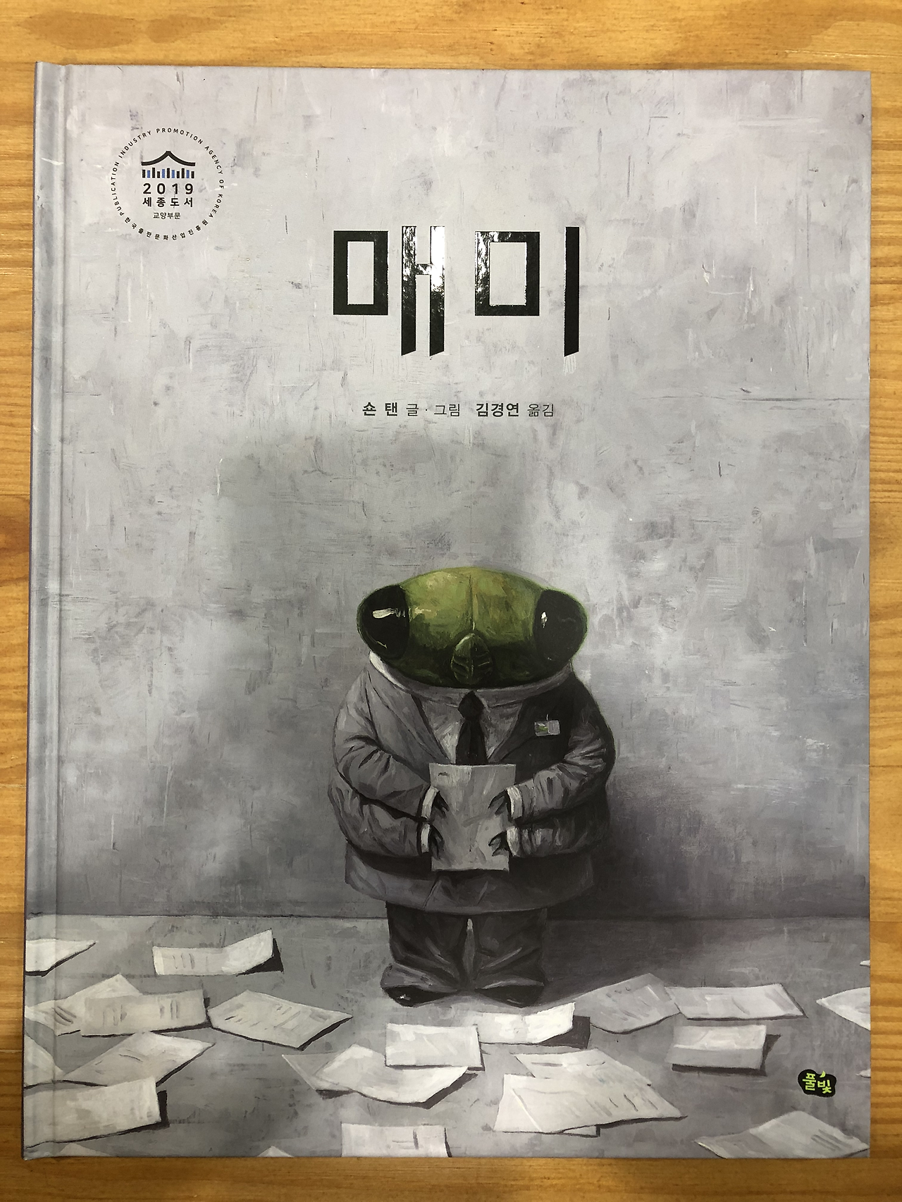 <매미>는 삭막한 현실을 살아가는 소외된 인간의 모습을 매미의 생애에 빗대어 보여주는 그림책이에요. 17년 동안 땅 속에서 지내는 매미를 17년 차의 직장인으로 그려내고 있습니다.