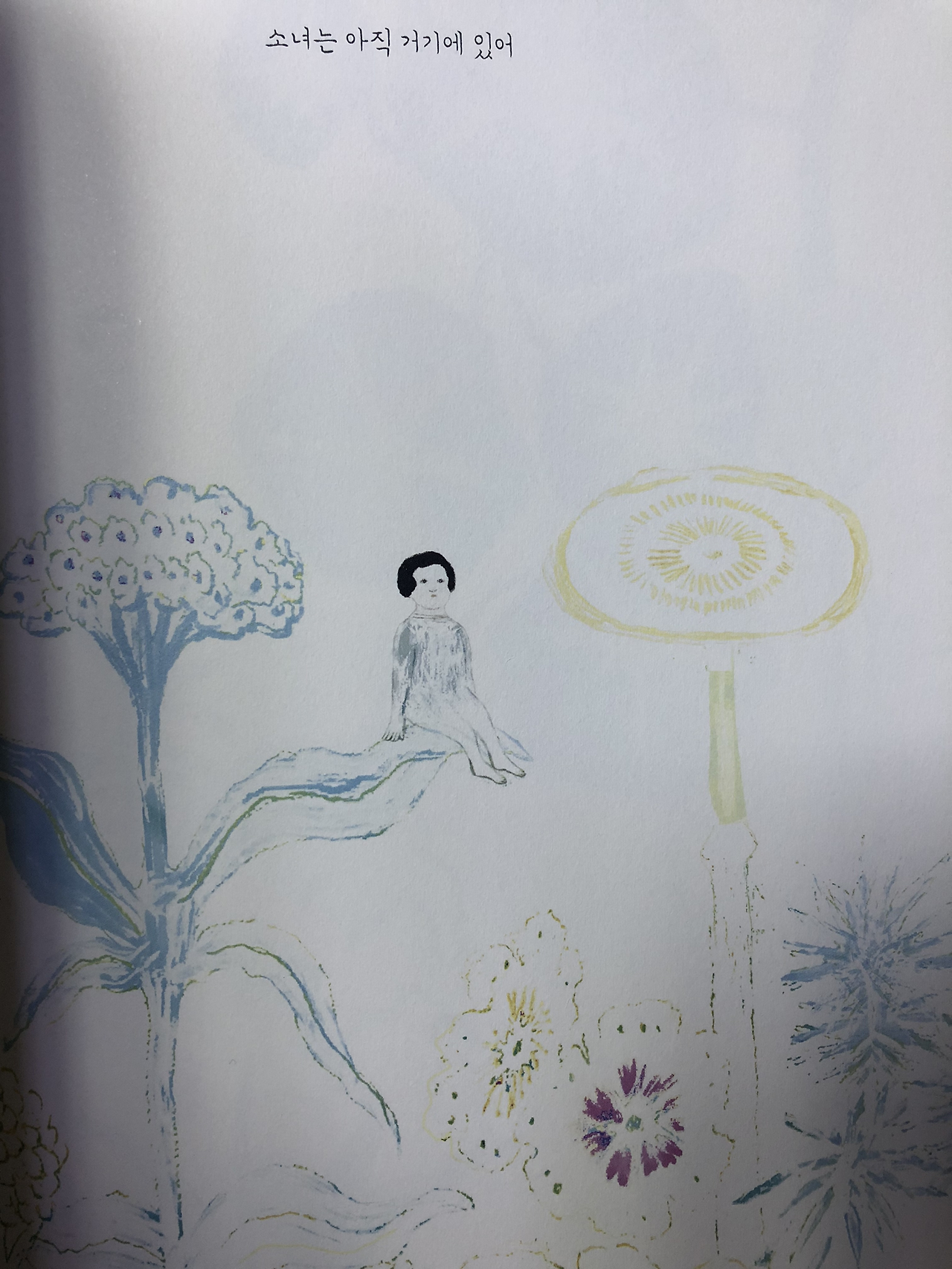 크나큰 나무들의 숲을 지나고 꽃길을 걸으며 길의 끝에서 비를 만난 소녀는 흩어지고 스며들어 사라집니다. 그런데 소녀는 아직 거기에 있습니다. 그리고 묘한 말을 남깁니다.