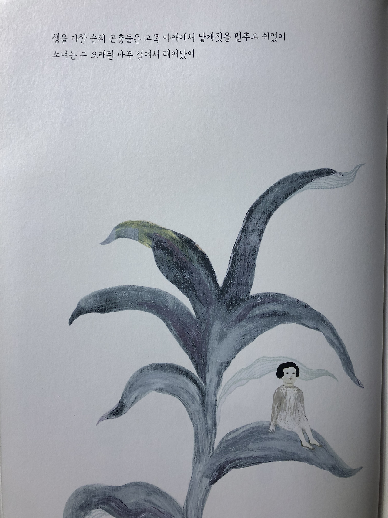 죽음의 자리에서 태어난 한 소녀가 있습니다. 숲의 소녀는 아직 알지 못하는 어떤 것들을 궁금해하며 낮이 밤으로 변해가는 풍경을 바라봅니다. 이끼 숲에 찾아오는 세 번의 밤을 보낸 소녀는 친구들에게 작별 인사를 합니다.