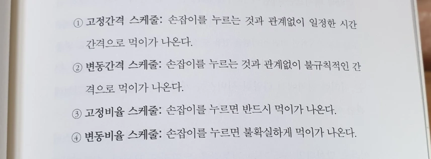 왜 그토록 소셜미디어에 빠져드는 걸까에 대한 다양한 답이 있겠지만, 스키너는 "뇌의 대가"라는 측면에서 말했다. 버리스 프레더릭 스키너(Burrhus Frederic skinner)는 행동심리학의 창시자다."자유의지는 환상이며, 사람의 행동은 과거의 행동 결과에 의존한다."라고 주장했다.'스키너 상자'를 만들어 쥐가 어떠한 행동을 하는지 연구한 사람이다. 스키너는 네 가지 조건을 설정하고, 쥐가 어떤 조건에서 손잡이를 더 많이 누르는지 실험했다.