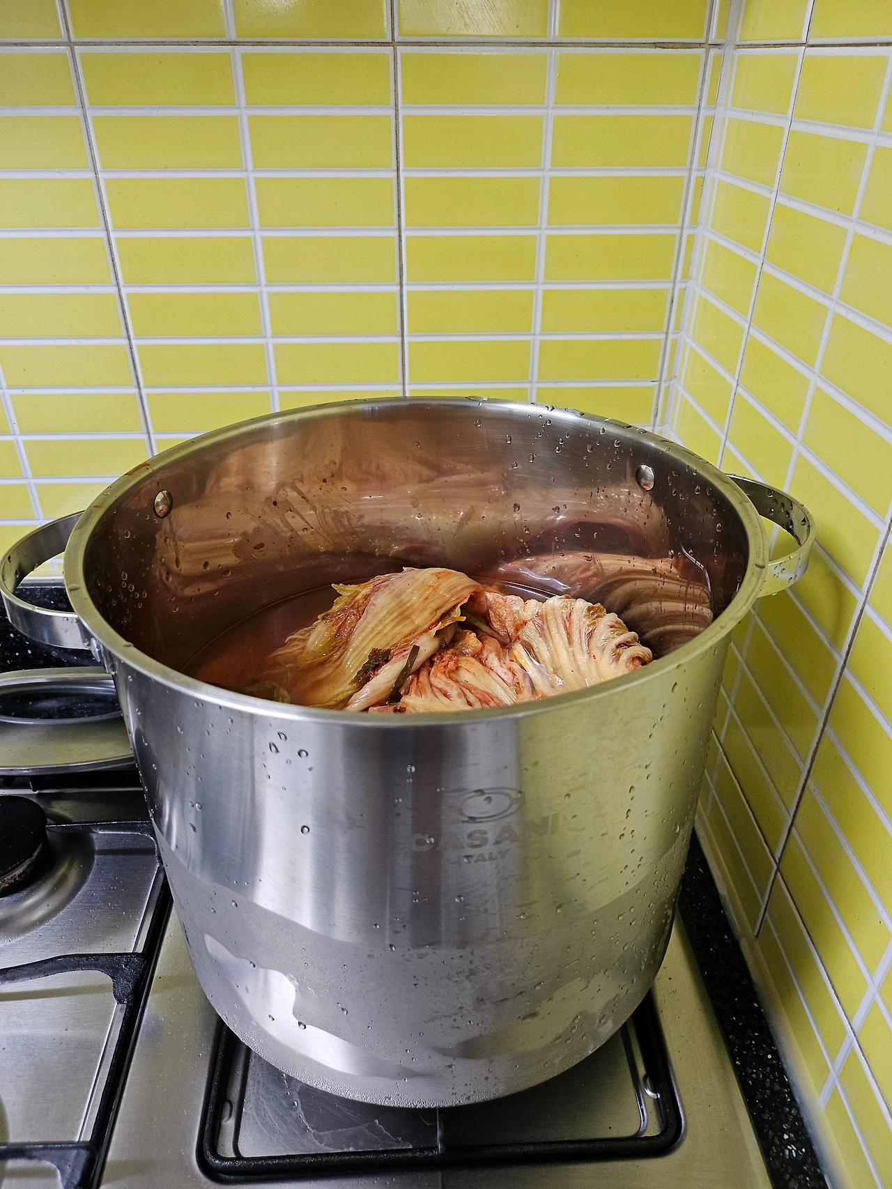 친정엄마에게 받은 영감을 살려 등갈비를 이용한 김치찌개를 끓였다. 10명이 먹어야 하기에 등갈비를 4대 샀다. 팔팔 끓는 물에 등갈비를 데치고 흐르는 물에 불순물을 제거한 뒤 대형 솥단지 아래 등갈비를 나란히 줄지어 깔아놨다. 잘 읽어 묵은 김치를 그 위에 올리고 육수를 부은 뒤 센 불로 한 시간 끓여주면 완성. 시어머니가 주신 국간장을 이용해 간을 맞추기만 했는데 등갈비에서 우러나오는 진한 돼지 육수와 시원한 김장김치가 주는 개운함이 더해져 입안에서 폭죽 터지는 맛이 탄생했다. 나 이만하면 잘하는데?