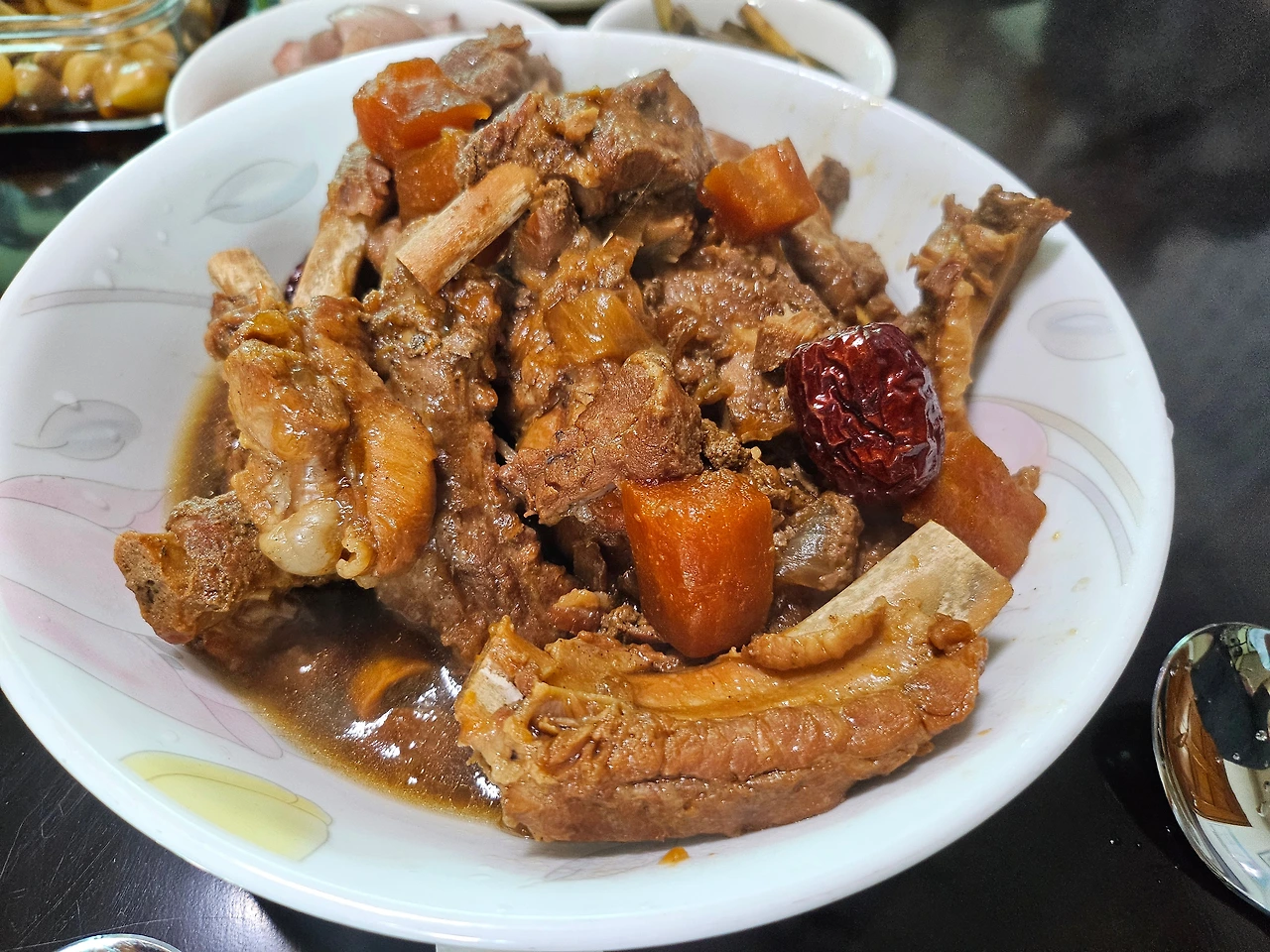 친정 엄마가 손녀들을 위해 꼭 해주는 요리는 등갈비찜이다. 간장 양념과 주홍빛 당근 자색 양파와 쭈글쭈글하면서도 탱탱한 속을 지닌 대추를 넣고 압력밥솥에서 한아름 끓인 등갈비찜을 하신다. 고기를 그다지 좋아하지 않아 삼겹살이든 소고기든 몇 점 먹고 마는 막내지만 유독 엄마가 해준 등갈비찜은 양손에 등갈비 하나씩 손에 야무지게 붙잡고 뜯어먹는다. 갈비도 먹어 본 사람이 잘 먹는다고 하는데 막내가 등갈비를 먹는 수준은 이미 발골의 수준이다.