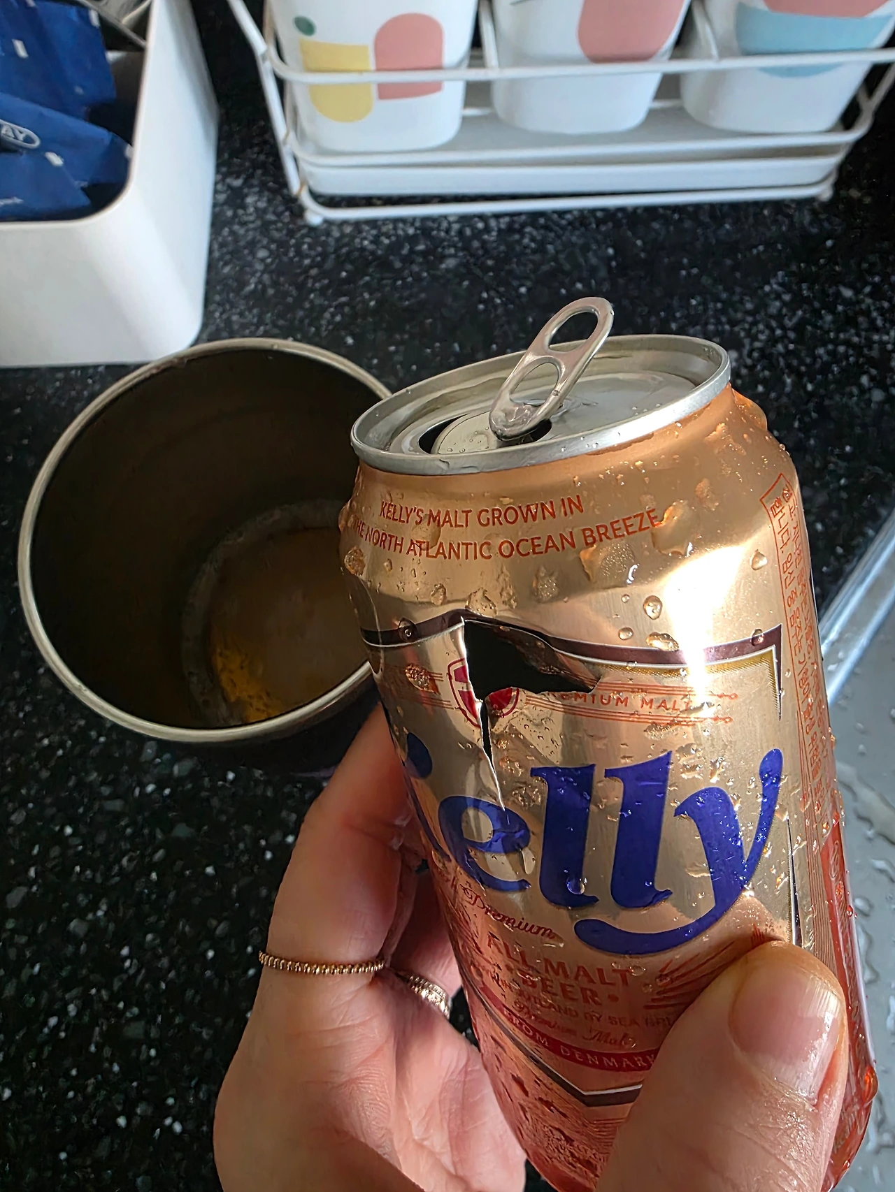 다급히 맥주캔을 따고 졸졸졸 담기기를 바랐는데 어찌된 일인지 터져버린 구멍을 따라 흐르는 맥주의 양이 더 많았다.